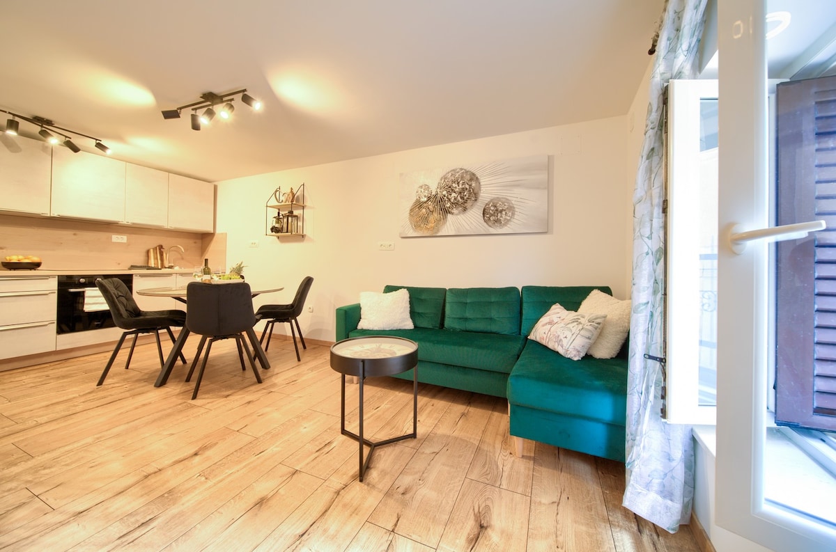 Erkunde die Altstadt von Krk und Sehenswürdigkeiten in wenigen Minuten. 5-Sterne-Platinum Apartment 4 für 6 Gäste mit 3 Kingsize-Schlafzimmern und 3 Badezimmern. Mit 2 privaten Terrassen, einem Wohnzimmer und einer Küche, EINEM WHIRLPOOL und einer INFRAROT-SAUNA. PARKPLATZ für 2 Autos innerhalb der Altstadt-Mauern! Zentral in der Altstadt von Krk, 200 m vom Strand entfernt, mit nahe gelegenen Restaurants, Geschäften, Weinverkostungen und historischem Charme. Alle benötigten Annehmlichkeiten sind vorhanden, einschließlich WLAN und Netflix. Modernes Design für einen ruhigen Rückzugsort.
