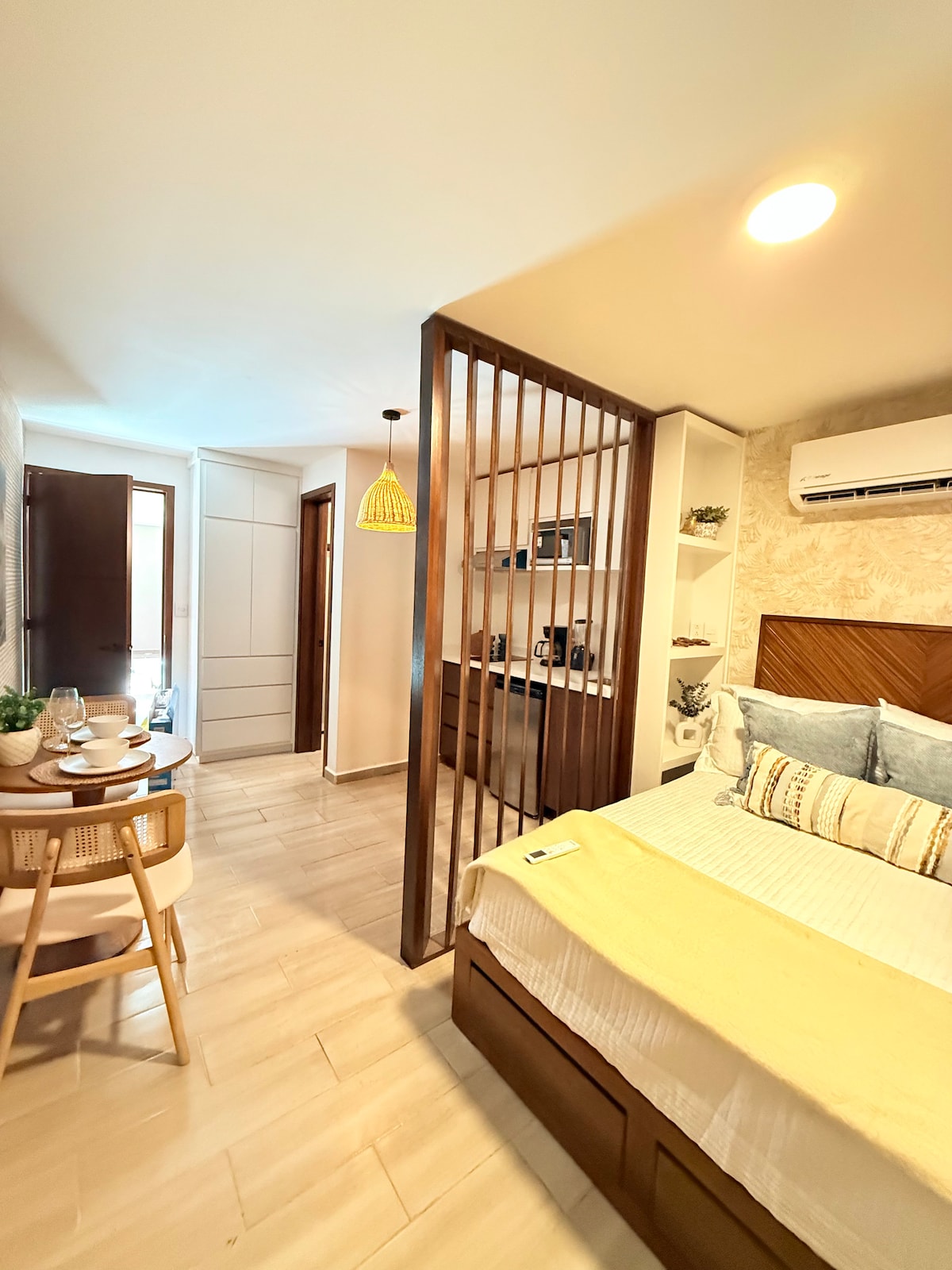 Encantador departamento, con una decoración cálida que te hará sentir como en casa, este edificio es totalmente nuevo. El departamento se encuentra a 15 minutos de la playa en auto y a 15 minutos del centro, caminando podrás encontrar tiendas de autoservicio y una pequeña y agradable cafetería con un jardín precioso para relajarte.