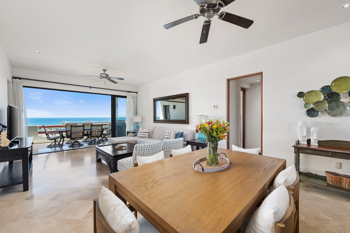 Entfliehe ins Paradies in dieser atemberaubenden, von Designern ausgestatteten Wohnung in Pedregal, dem exklusivsten Viertel von Cabo San Lucas. Perfekt gelegen, nur wenige Minuten vom Yachthafen und der Innenstadt entfernt, bietet diese brandneue Luxus-Wohnung die ultimative Mischung aus Ruhe und Komfort. Betrete eine wunderschön eingerichtete Eckeinheit mit raumhohen Panoramafenstern, die einen atemberaubenden Blick auf den Golf von Kalifornien und die Skyline der Stadt bieten.