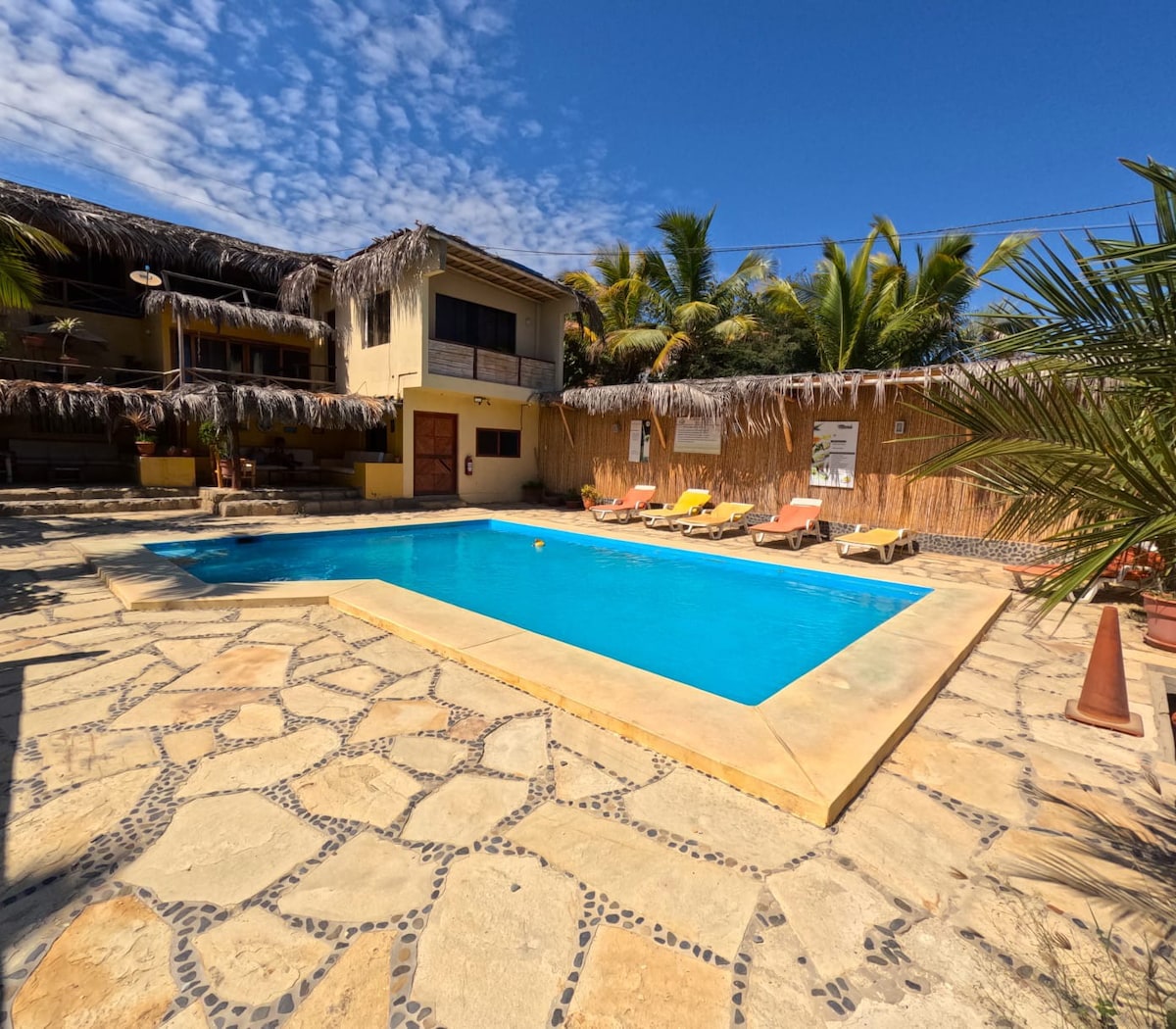 • Die Unterkunft befindet sich sechs Minuten von der Hauptstraße von Máncora auf der Spitze eines Hügels und zehn Minuten vom Strand der Stadt entfernt. • Auf der Hauptstraße gibt es Restaurants, Weingeschäfte, Kunsthandwerksläden, Touristenbüros ... • Der Zugang zum Grundstück erfolgt über Treppen.