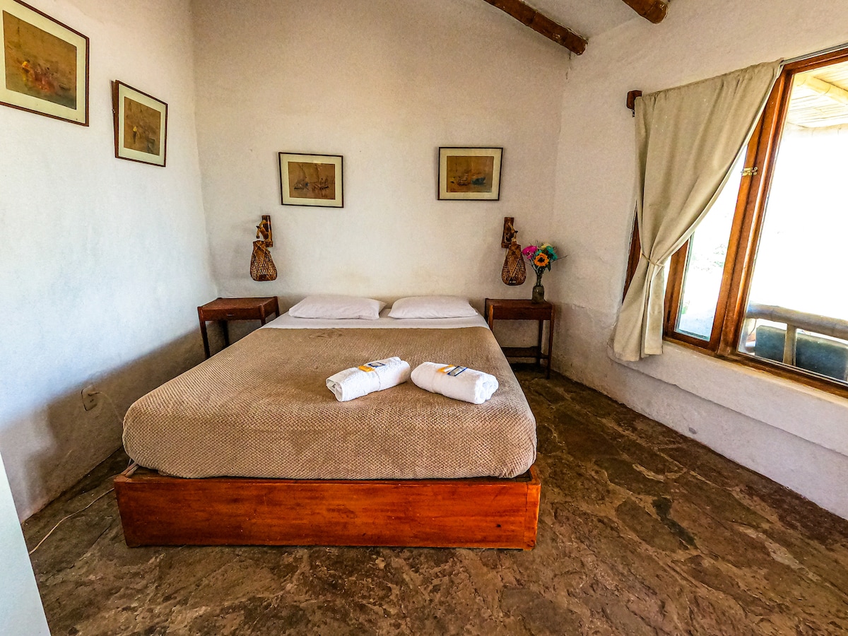 Nuestro Bungalow King se destaca por su excelente ubicación y privacidad, es el más cercano al mar y cuenta con un balcón privado. Este espacio rústico y acogedor tiene una cama King size, ventilador, frigobar y todos los amenities necesarios para una experiencia única.
