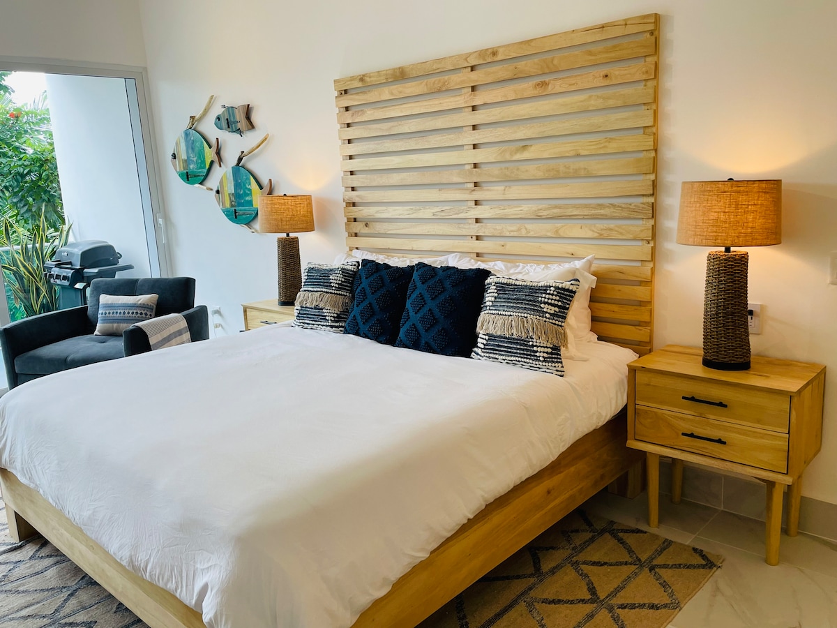 Aroma del Mar, ein moderner, warmer und sorgfältig eingerichteter Raum, in dem du dich von der Ankunft an wie zuhause fühlst. Diese gemütliche Wohnung befindet sich nur wenige Minuten vom Strand entfernt und wurde so gestaltet, dass sie dir einen komfortablen, funktionalen Aufenthalt mit dieser tropischen Note bietet, die so beliebt ist. Entspanne dich in einem hellen Wohnzimmer mit künstlerischen Details und komfortablen Möbeln, einer Küche mit einer Bar und genieße ein Zimmer mit einem Queensize-Bett, einer entspannten Atmosphäre, die dich zum Ausruhen einlädt.
