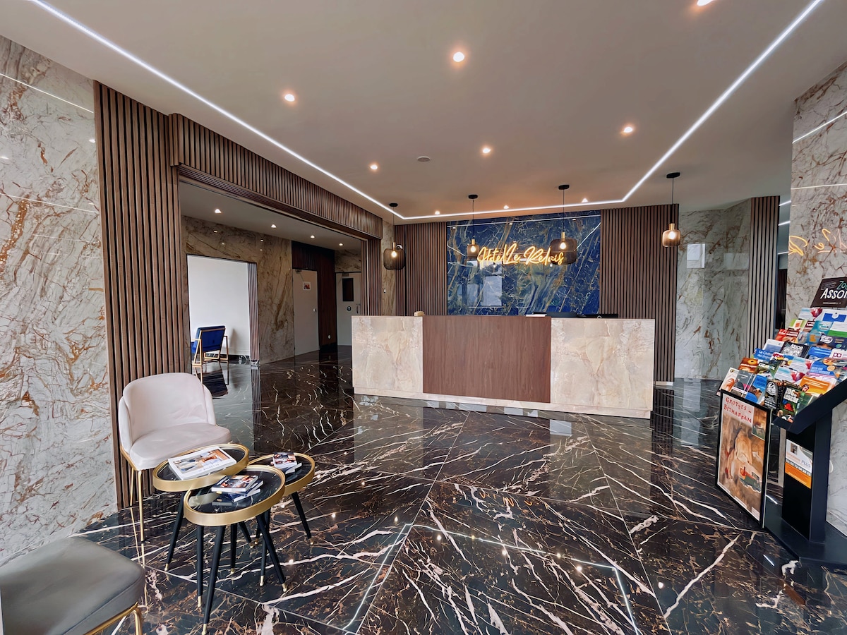 Diese klimatisierte und schallisolierte Suite mit zwei Schlafzimmern bietet einen Blick auf die Pyrenäen und ist mit zwei Flachbildfernsehern ausgestattet. Sie verfügt über zwei Badezimmer und kostenloses WLAN. Weniger als 10 Gehminuten vom Refugium Notre-Dame de Lourdes entfernt. Geschäfte, Restaurants und das Stadtzentrum, das Tourismusbüro sowie der Bus- und Bahnhof sind zu Fuß erreichbar. Wir haben einen privaten, kostenpflichtigen Parkplatz für Autos und Motorräder.