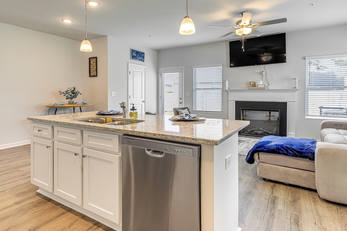 Übernachte in unserem Gästehaus Lakeside Bungalow, das alles bietet, was du für einen erholsamen Aufenthalt benötigst – Seeblick, Kingsize-Bett, Smart-TV, private Terrasse mit Feuerstelle und mehr. Genieße Angeln, Paddelbootfahren und Tierbeobachtung. Wir sehen oft Schildkröten, Rehe, große Blaureiher, Gänse, Frösche, Fische und Glühwürmchen⚡️. Das Gästehaus teilt sich eine Wand (Küchenwand) mit dem Haupthaus. 2 freundliche Spitze vor Ort. Ein abgeschiedener Natururlaub, aber dennoch in der Nähe aller Annehmlichkeiten! 10-15 Minuten von Target, Walmart usw. entfernt