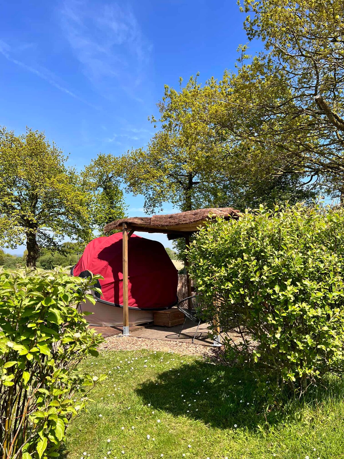 Im Herzen der normannischen Bocage, Entdecken Sie unsere Kuppel für einen romantischen Aufenthalt. Sie ist mit einem Whirlpool im Freien ausgestattet, der das ganze Jahr über beheizt ist, und Sie können den Tennisplatz direkt nebenan nutzen. Eine Auszeit in der Natur zu zweit, um abzuschalten, neue Energie zu tanken und ein Gefühl der Freiheit zu finden. Wir bieten herzhafte Platten, herzhaft-süße Platten, Dekoration zum Thema Liebe, Massage, Fotoshooting, gegen Aufpreis, wenn Sie Lust haben.