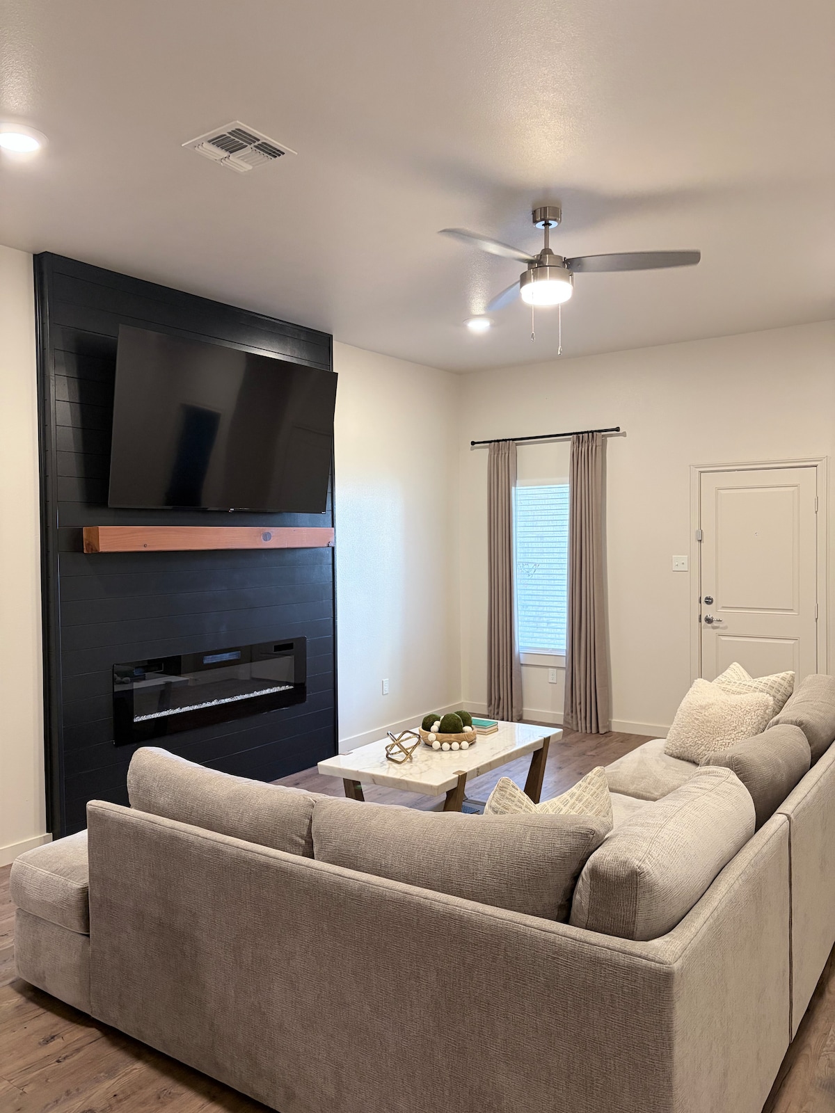 Gönn dir Luxus im „The Matador“, einer erstklassigen Unterkunft in zentraler Lage in den besten Gegenden von Lubbock, Texas. Nur wenige Minuten von der Texas Tech und gegenüber dem Greek Circle entfernt, bietet dieses Neubauhaus eine Kombination aus modernem Design und hochwertigen Annehmlichkeiten. Die Haupt-Suite ist geräumig und verfügt über ein Kingsize-Doppelbett, einen privaten Arbeitsbereich und einen großen begehbaren Kleiderschrank. Das Badezimmer verfügt über eine begehbare Dusche und eine Badewanne. Genieße den offenen Wohnraum mit einem ausziehbaren Sofa, einem 75-Zoll-Fernseher und viel Platz zum Ausbreiten.