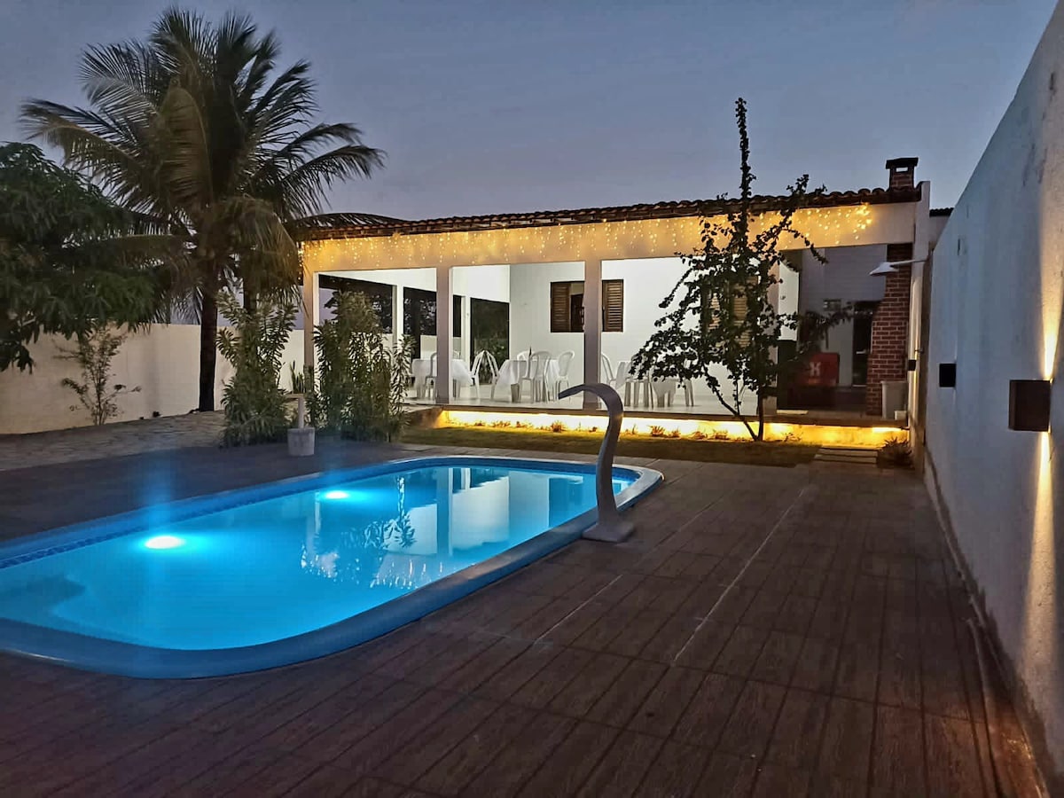 Entspanne dich mit der ganzen Familie in dieser ruhigen Unterkunft, nah am Strand, weniger als 100 Meter entfernt. Das Haus verfügt über 3 Schlafzimmer, die zwei Suiten sind Doppel- und Einzelbetten Doppelschlafsofa Swimmingpool Drei Schlafzimmer mit Klimaanlage WLAN Fernseher Grill Gefrierschrank Küche mit allen Haushaltsutensilien Stütze die Plastiktische mit einem Sonnenschirm. Espaço Kids 4 Parkplätze Elektrozaun