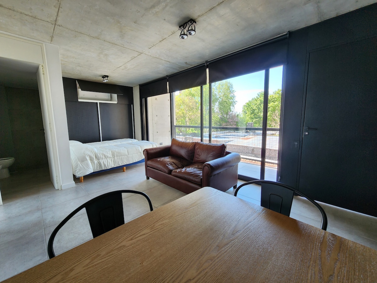Departamento estudio nuevo céntrico, amplio, moderno y muy luminoso. Totalmente equipado, cuenta con TV 42" (NEFLIX, Prime Video, Disney+), vajilla y electro, ropa de cama y toallas. Tiene balcón con vista al río y está ubicado a 100mtrs del emblemático Bv. Oroño, en zona de parques, bares y restaurantes, inmejorable para salir y pasear, tanto de día y como de noche. Cochera privada en PB en el establecimiento incluida en el precio, adecuada para auto, SUV o camioneta pequeña.