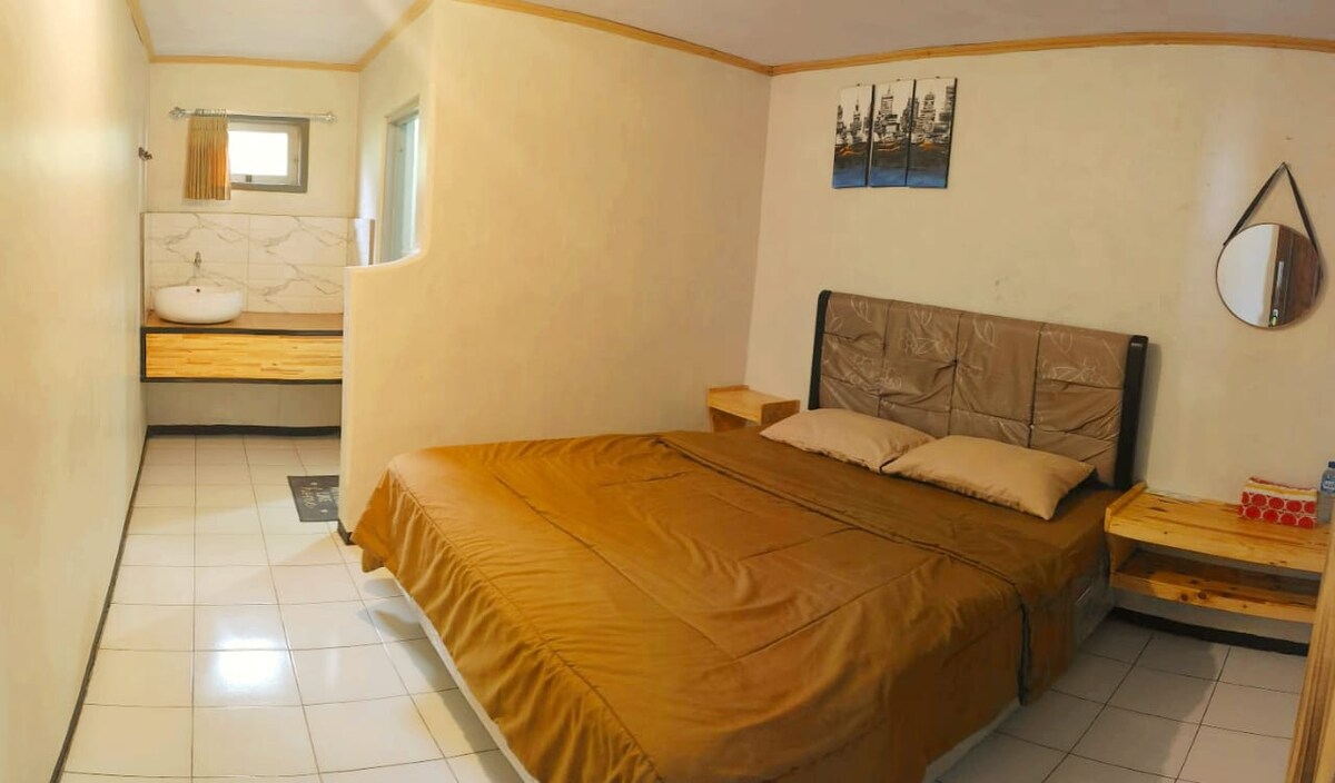 Ein Doppelzimmer für 2 Personen mit eigenem Bad mit heißem Wasser. Dieses Schlafzimmer ist Teil einer Unterkunft, die sich in der Nähe einer öffentlichen Bushaltestelle, Restaurants und einem kleinen Kiosk befindet, der warme Jacken vermietet. Das Eingangstor des Nationalparks Bromo liegt etwa 10 Gehminuten entfernt. Und nur wenige Gehminuten von Seruni Hill entfernt, etwa 45 Minuten, und 90 Minuten zu Fuß vom Mount Bromo entfernt. Wir bieten Mietjeep, Motor Cross, Abholung und Rücktransport, Privatwagen oder Sharing-Jeep