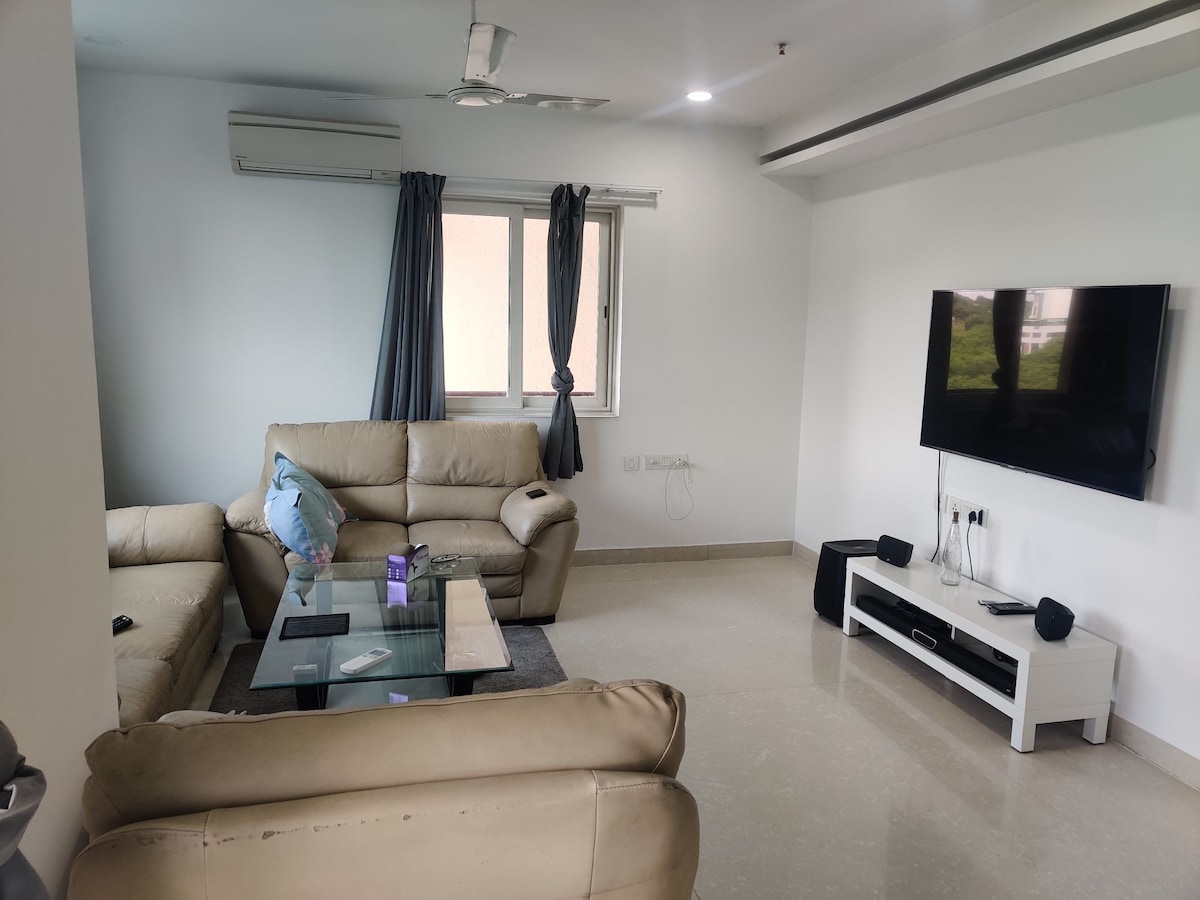 2 BHK Wohnung in Gachibowli als ganze Einheit verfügbar. Unterkunft für eine Familie oder eine Gruppe von 4-5 Personen. Lage: - 5 Minuten Fahrt nach AIG , US-Konsulat , Microsoft, Gachibowli Stadium , Infosys , ORR - 5 Gehminuten vom DLF Cyber City Gate 4 entfernt. 🛋️ In der Wohnung findest du: Wohnzimmer, Esszimmer, 2 klimatisierte Schlafzimmer, 2 Balkone, voll funktionsfähige Küche, 2 Badezimmer 🚗 Bonus: 1-Überdachter Parkplatz steht kostenlos zur Verfügung. Je nach Verfügbarkeit. Bitte erkundige dich bei uns, um dies zu bestätigen.