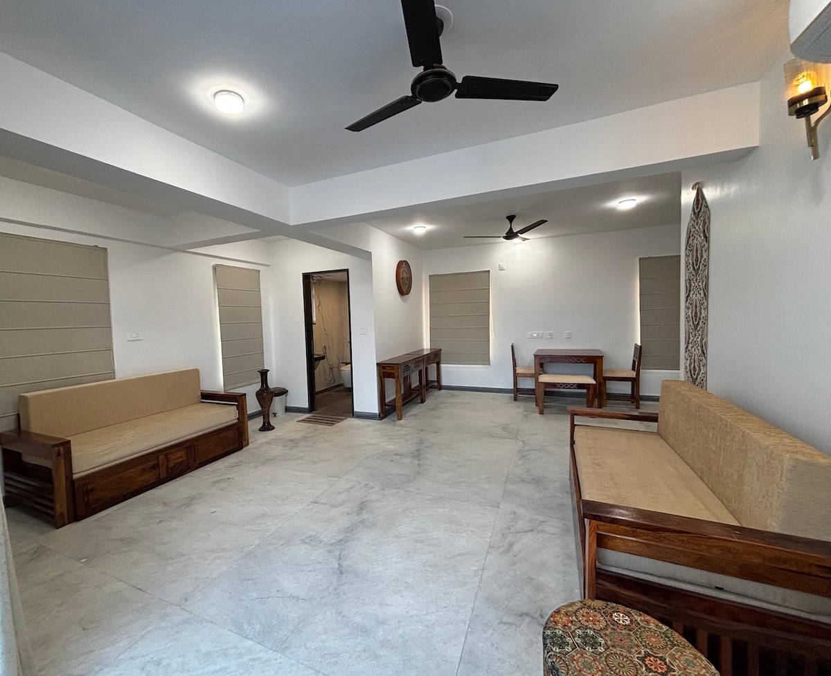 Gemütliche Unterkunft mit 1 Schlafzimmer und einem zusätzlichen Wohn-/Schlafzimmer zum Netflixen und Chillen🎬 – perfekt für Paare und kleine Gruppen. Umfasst ein Hauptschlafzimmer und einen zweiten Raum im Stil eines Schlafzimmers mit Projektor, Sitzgelegenheiten auf dem Boden und Bettwäsche für die untere Etage (für 4–5 Personen). Verfügt über eine Küche, ein modernes Badezimmer und eine warme Einrichtung. Günstig in der Nähe des Bombay Hospital, der Apollo High Street und der Phoenix Mall gelegen.