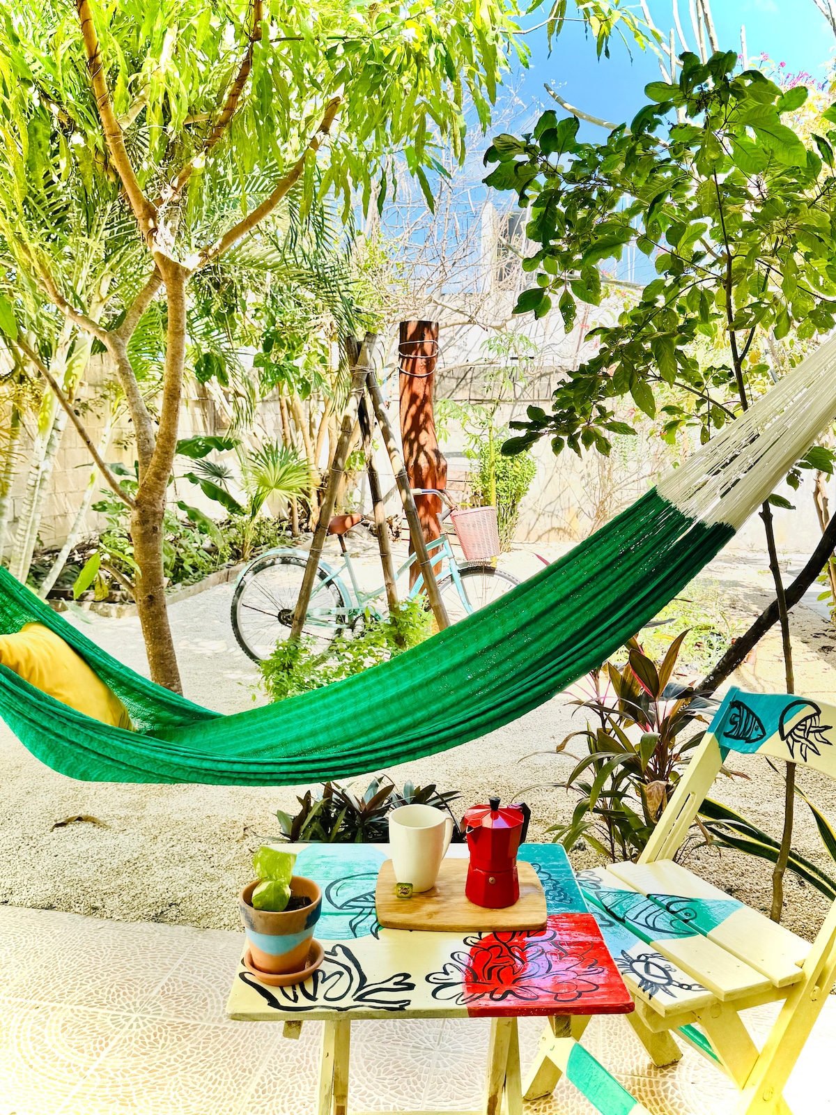 Genieße Mahahual in dieser schönen Unterkunft mit Blick auf den Garten, ob als Paar oder mit Freunden, du wirst sie sicher lieben. Sie verfügt über eine voll ausgestattete Außenküche, eine Hängematte für deine Ruhe und einen kleinen Garten. Wenn du in der Saison ankommst und es Früchte gibt, kannst du sie nutzen. Der Strand liegt nur fünf Fahrminuten entfernt, die wir zur Verfügung stellen 🚲. Du wirst die volle Erfahrung wie ein Einheimischer erleben! In der Nähe des Ortes gibt es Bars, Restaurants und kleine Supermärkte, die du sicherlich genießen wirst, ohne zu viel auszugeben