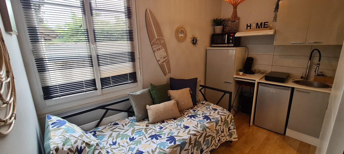 IDEAL GELEGEN im Stadtzentrum von Chartres, liegt dieses CHARMANTE und HELLE Studio in unserem Garten, im 1. Stock eines separaten Anbaus, über eine private Treppe zu erreichen. Zugang zum Garten, den Sie mit den Gastgebern teilen. ★Eingang zum autonomen Grundstück mit Digicode. 8 Minuten zu Fuß vom SNCF-Bahnhof und nur einen Katzensprung vom Herzen der Fußgängerzone der Stadt und der Kathedrale von Chartres entfernt, ist diese Unterkunft mit eleganter und gemütlicher Dekoration der ideale Ort, um sich nach einem Tag voller Besichtigungen oder Arbeit auszuruhen.
