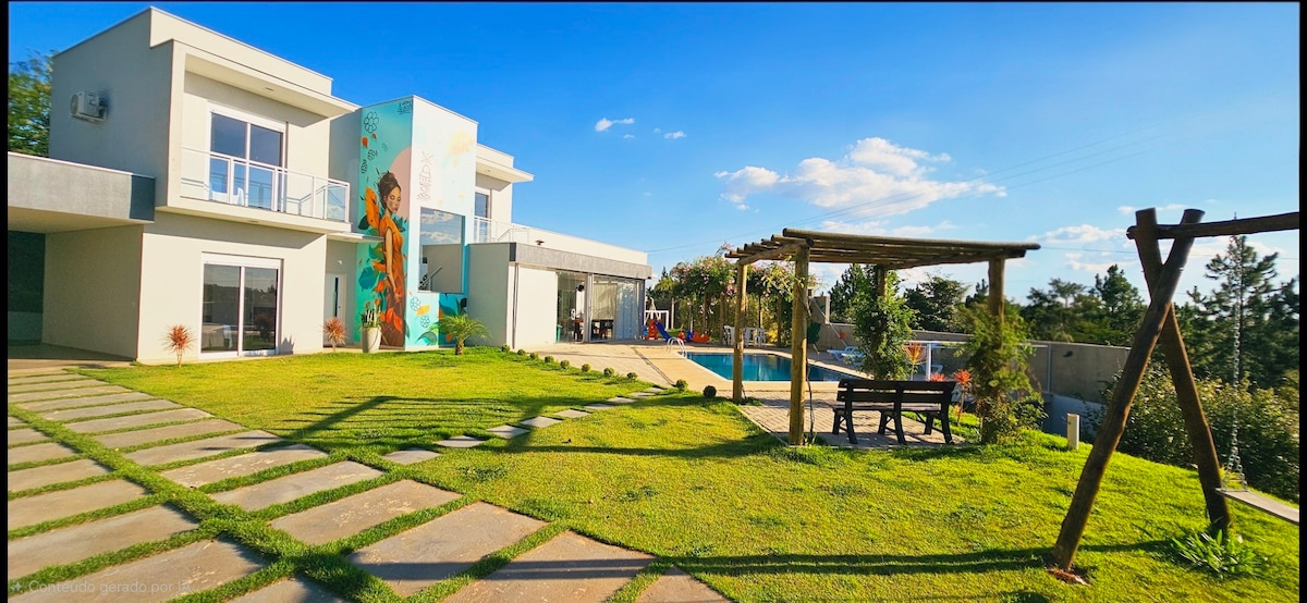 JETZT MIT BEHEIZTEM POOL. WOCHE VOM 13.12.-20. kostenlos Neue Unterkunft, die neu in den AirBnb-Katalog aufgenommen wurde Condomínio Porta do Sol BARRIEREFREIHEIT Entspanne dich mit deiner Familie in dieser Unterkunft mit Hallenbad, Freizeitbereich, Straße ohne Ausgang. Es gibt 4 Suiten, zwei mit Klimaanlage und zwei mit Deckenventilator Eine Suite mit BARRIEREFREIHEIT. Volles Bettzeug. Salon mit Grill. Pizzaofen, Bar,Küche,Keller,Tischspiele,Leinwand. Redário, FirePlace, Ruhe und Sicherheit.