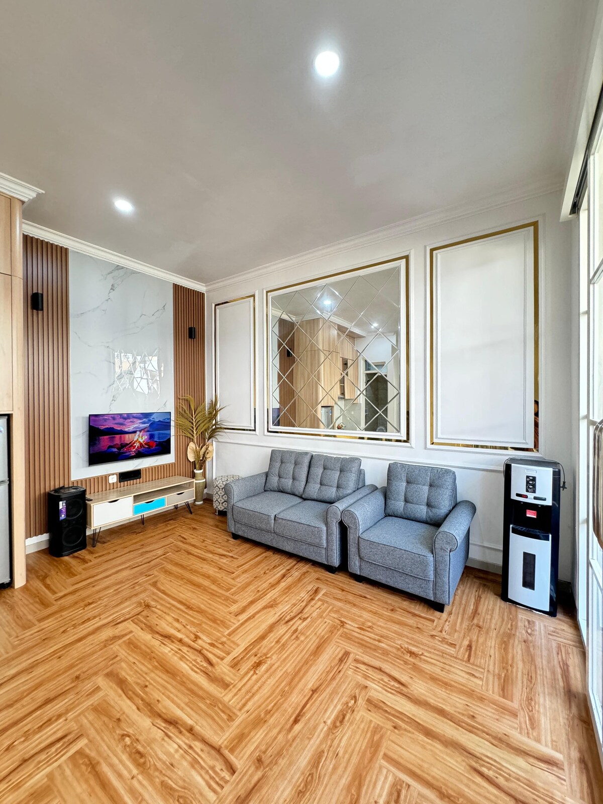 Villa Syariah Rumah Kedua Fasilitas : 1 Kamar - 2in1 Single Bed 1 Kamar - Double Foam Matras 140x200cm 1 Sofa Bed 1 Kamar Mandi dengan Water Heater dan Rain Shower Meja dan Kursi Kerja Almari Karpet Setrika Meja Setrika Dapur Kompor dan Peralatan Masak Kulkas Magic Com Meja Makan Smart TV Wifi 200Mbps Taman Swings + Children Slides Carport