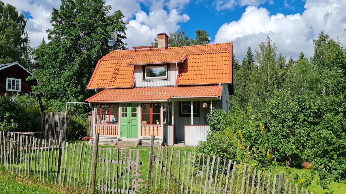 Komm und entspanne dich in diesem friedlichen, gemütlichen gelben Haus! Umgeben von Wald und mit einem Bach, der gleich um die Ecke verläuft. Ein 15-minütiger Spaziergang (900 m) bringt dich zu einem wunderschönen Badesee mit unglaublich klarem Wasser. Wir sind Malin und Woody und wohnen nebenan auf einem kleinen Bauernhof. Wir haben drei Kinder, zwei Katzen und eine Entenherde. Je nach Jahreszeit besteht die Möglichkeit, Bio-Enten und Gemüse direkt aus dem Garten zu kaufen! Neben dem Teich gibt es auch eine holzbefeuerte Sauna.