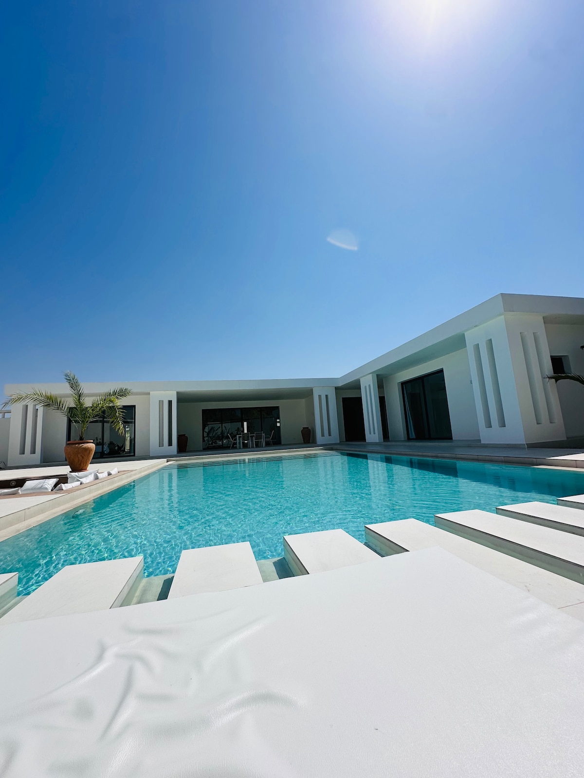 A Saly, très belle villa contemporaine sur une magnifique plage privée à la Résidence du Port 3. Personnel de maison quotidien inclus sans supplément Située à 100m de l’hôtel Movenpick Lamantin Beach 5*. Piscine très calme en copropriété Gardiens 24h/24h dans la copropriété et sur la plage ( transat/ parasol) . Wifi, TV . Climatisation. Linge de maison fourni. Electricité en supplément Parking. Supermarché, pharmacie, centre médical, golf à 5 mn 3 chambres/3 salles de bain.