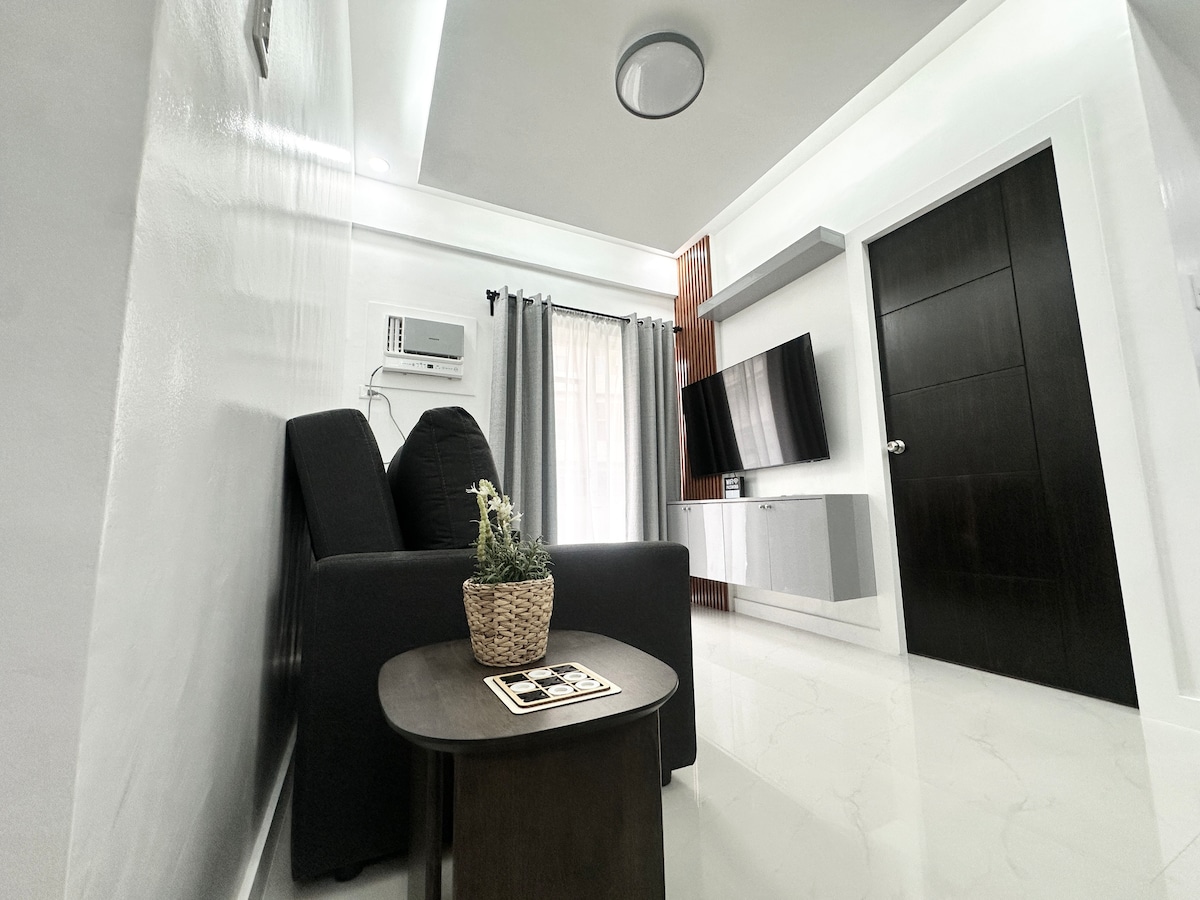 Erlebe die perfekte Mischung aus heimischem Komfort und hotelähnlichem Luxus, wo deine Entspannung, dein Genuss und dein Komfort unsere obersten Prioritäten sind. Ursprünglich als 2-Zimmer-Wohnung konzipiert, haben wir diese Einheit in eine 1-Zimmer-Suite mit Balkon umgewandelt, die einen geräumigen Wohn- und Essbereich bietet. Komplett mit Haushaltsgeräten, Unterhaltungsmöglichkeiten und Spielkonsolen ist diese voll möblierte Eigentumswohnung in Quezon City für tägliche, wöchentliche oder monatliche Vermietungen verfügbar, ideal für deinen nächsten Aufenthalt.