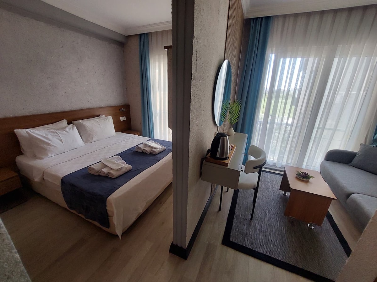 Nur wenige Schritte von den schönen Stränden von Side entfernt, bietet unser gemütliches Boutique-Hotel alles, was du für einen erholsamen Urlaub brauchst. Das Zimmer verfügt über ein bequemes Doppelbett, einen Sitzbereich, eine Küchenzeile, eine Waschmaschine und einen Kühlschrank. Genieße das traditionelle türkische Hammam, entspanne dich bei Spa-Behandlungen und kühle dich im Außenpool ab. Mit einer warmen Atmosphäre, stilvollen Räumlichkeiten und einer großartigen Lage ist es der perfekte Ort, um sich zu entspannen und das Mittelmeer zu genießen.
