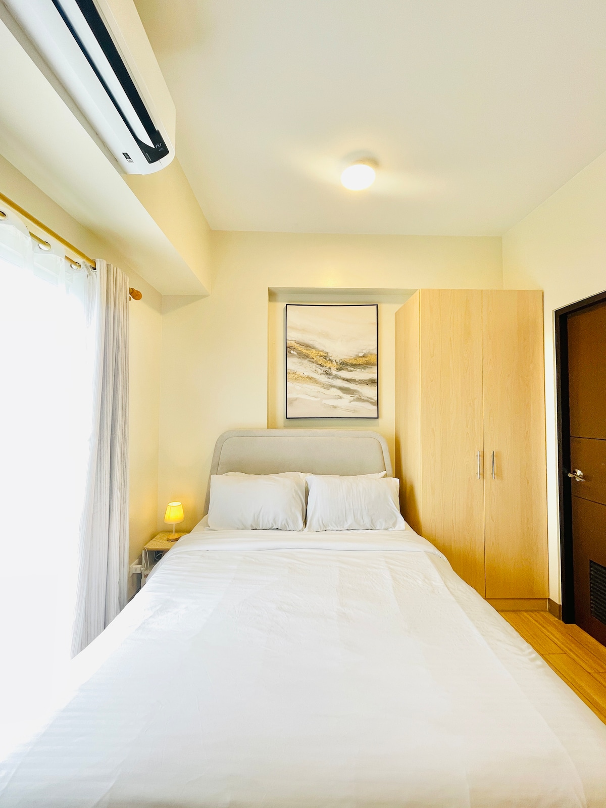 📢 PLEASE READ BEFORE BOOKING "Home Away from Home" – Studio Unit This cozy studio features 1 full/double size bed 🛏️, perfect for 2 people, plus an additional full/double size floor mattress (about 1 inch thick) 🛋️ that can comfortably accommodate 2 more guests. The extra mattress will only be set up if your party exceeds 2 guests. It’s your perfect urban sanctuary 🏙️, right in the heart of the vibrant Megaworld Complex! 🌟