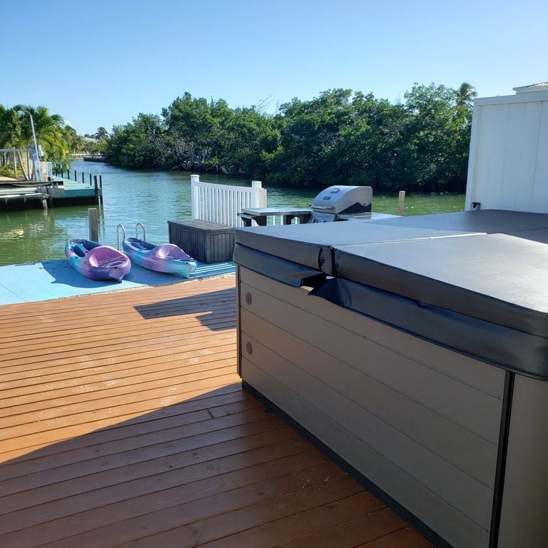 You don’t come to the islands to stay in a town—you come to slow down. Welcome to our tropical keys beach home, tucked away from the traffic and noise of US Hwy #1. Sway with the palms on the wraparound deck, soak in wide-open panoramic bay views, and catch fiery sunsets right off your dock. Fire up the BBQ, brew a Keurig, float in the private pool, or cast a line from the 300’ private pier/dock. Easy going island living with ocean / gulf breezes, comfy beds, quality linens, Wi-Fi, and cable TV.