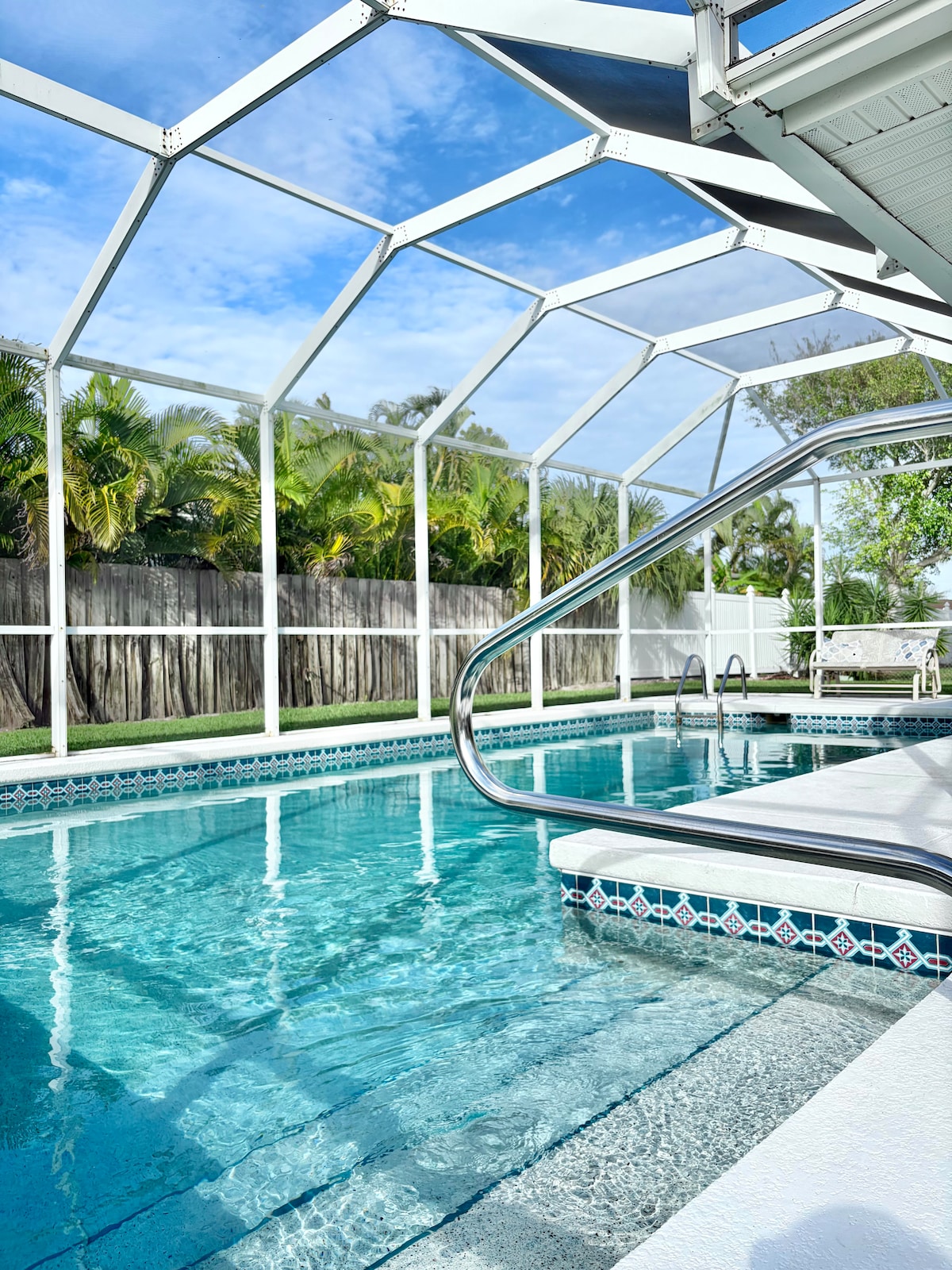Willkommen in der Beachcomber Cabana auf Marco Island! Der mit ★5,0★ bewertete 2BR-Rückzugsort ist perfekt zum Entspannen. Mit 3 Betten und 2 Bädern bietet dieses charmante Haus eine ruhige Zuflucht mit eigenem Zugang zu einer atemberaubenden Oase im Hinterhof. Dieser malerische Hafen liegt nur einen kurzen Spaziergang vom Strand entfernt und wird von Dustin gehostet. Er verbindet Komfort und Ruhe. Die Gäste schwärmen von ihrer Schönheit und Bequemlichkeit. Buche jetzt den ultimativen Kurzurlaub und erlebe, warum dieser ruhige Rückzugsort der ideale Ort für deinen nächsten Urlaub ist.