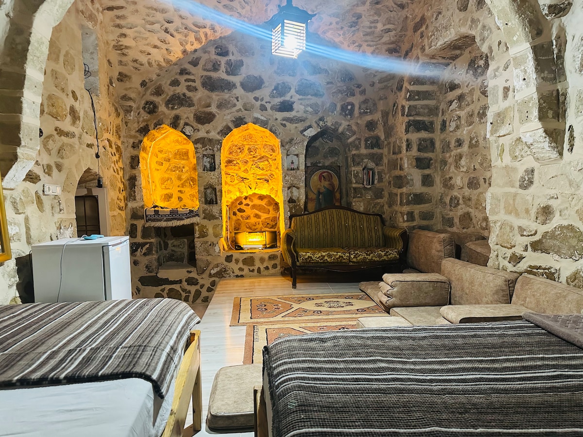In unserem Zimmer, das die faszinierende historische Textur von Mardin mit modernem Komfort verbindet, erwartet Sie ein unvergessliches Unterkunftserlebnis in der mystischen Atmosphäre der Steinmauern. Neben einem komfortablen und angenehmen Aufenthalt bieten wir unseren Gästen jeden Morgen auch einen sorgfältig zubereiteten Frühstücksservice, der im Zimmerpreis enthalten ist. Wir erwarten dich in unserer Einrichtung, um den Tag mit einem zufriedenstellenden Frühstück voller frischer Produkte zu beginnen.