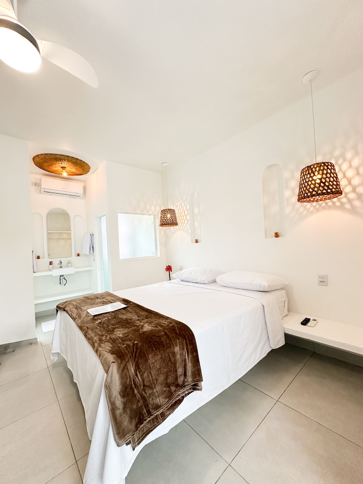 Komplette Wohnung, einschließlich Frühstücksbuffet und Zimmerservice. Das Hotel liegt in der Pousada Katmandu mit kostenlosem Zugang zum beheizten Außenpool, zur Deckbar, zu Spielen, zur üppigen Vegetation und vielem mehr. Die Wohnung verfügt über ein Wohnzimmer mit einer voll ausgestatteten Küche, ein Badezimmer und ein Schlafzimmer mit einem Doppel- und einem Einzelbett. Ausgestattet mit Klimaanlage und TV. 350 m vom Strand und in der Nähe des Zentrums von Maresias gelegen.