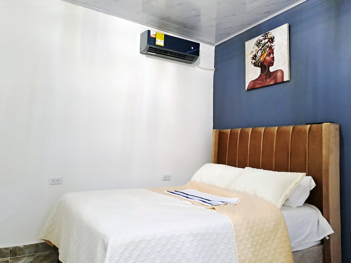 Das Hotel befindet sich im Hotel Ocean P in der Nähe des Flughafens und der ummauerten Stadt, ausgezeichnete Option, um in deinem nächsten Urlaub zu übernachten. Du wirst dich in einem 5-Sterne-Hotel fühlen, einschließlich Lobby, Bar-Restaurant, Fitnessraum, Swimmingpool, Whirlpool und direkter Zugang zum Strand. Das Hotel liegt im 13. Stock mit Ausblick auf die Cienaga. Geeignet für 1 Schlafzimmer, 2 Badezimmer, eine Küche, ein Esszimmer und ein Balkon. Es verfügt über eine unabhängige zentrale Klimaanlage für jeden Raum. Voll ausgestattete Küche. Im Wohnzimmer gibt es 2 Schlafsofas