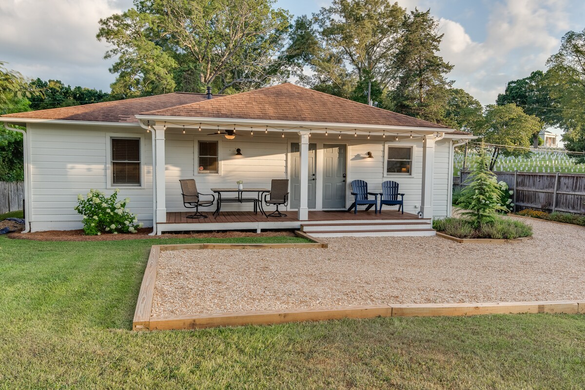 Willkommen im Cottage on Maple! Dieses stilvolle und aktualisierte Ferienhaus aus der Mitte des Jahrhunderts ist nur einen kurzen Spaziergang vom historischen Marietta Square, 5 Autominuten von der I-75 und dem Kennesaw Mountain, 15 von The Battery (Go Braves!) und 25 von allem, was Atlanta zu bieten hat, entfernt. Das Cottage liegt in einer ruhigen und friedlichen Gegend und ist voller Charakter und Charme. Komm und feiere mit der Familie unter den Lichterketten der privaten hinteren Terrasse oder genieße die Einsamkeit auf der abgeschirmten Veranda mit Sonnenaufgang und Kaffee als deine Begleiter.