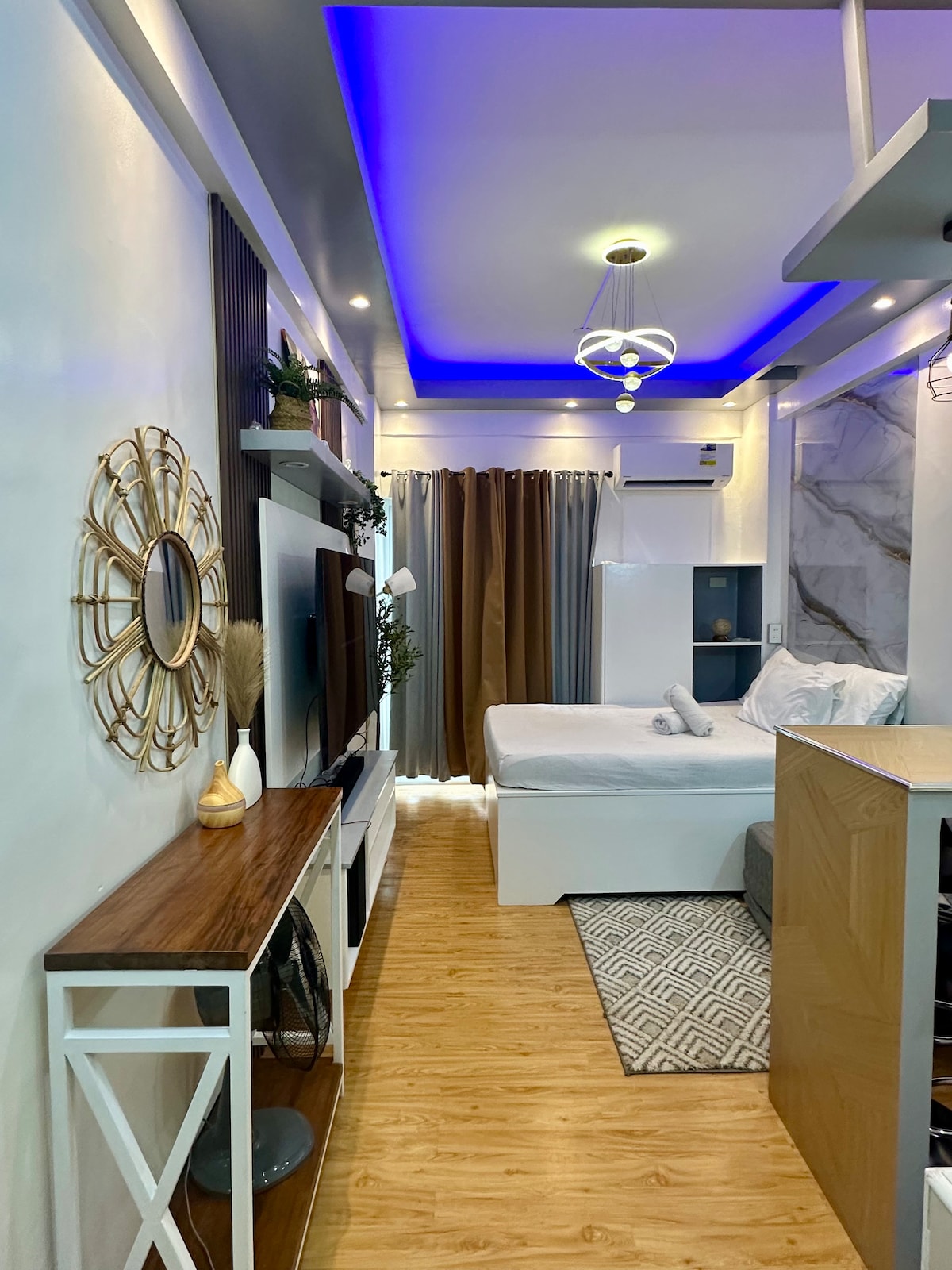 Eine gemütliche und komfortable Studiowohnung im Herzen von SMDC Cheer Residences in Marilao, Bulacan! Unsere Einheit ist komplett möbliert und mit allem ausgestattet, was du für einen komfortablen und angenehmen Aufenthalt benötigst, einschließlich eines komfortablen Queensize-Betts, eines Schlafsofas, eines Flachbild-TV, eines Esstisches, einer Küchenzeile mit einem Kühlschrank, einer Mikrowelle, einem Wasserkocher und grundlegenden Küchenutensilien, einem eigenen Badezimmer mit einer warmen und kalten Dusche, einem Swimmingpool, einem 24-Stunden-Sicherheitsdienst und einer Rezeption.