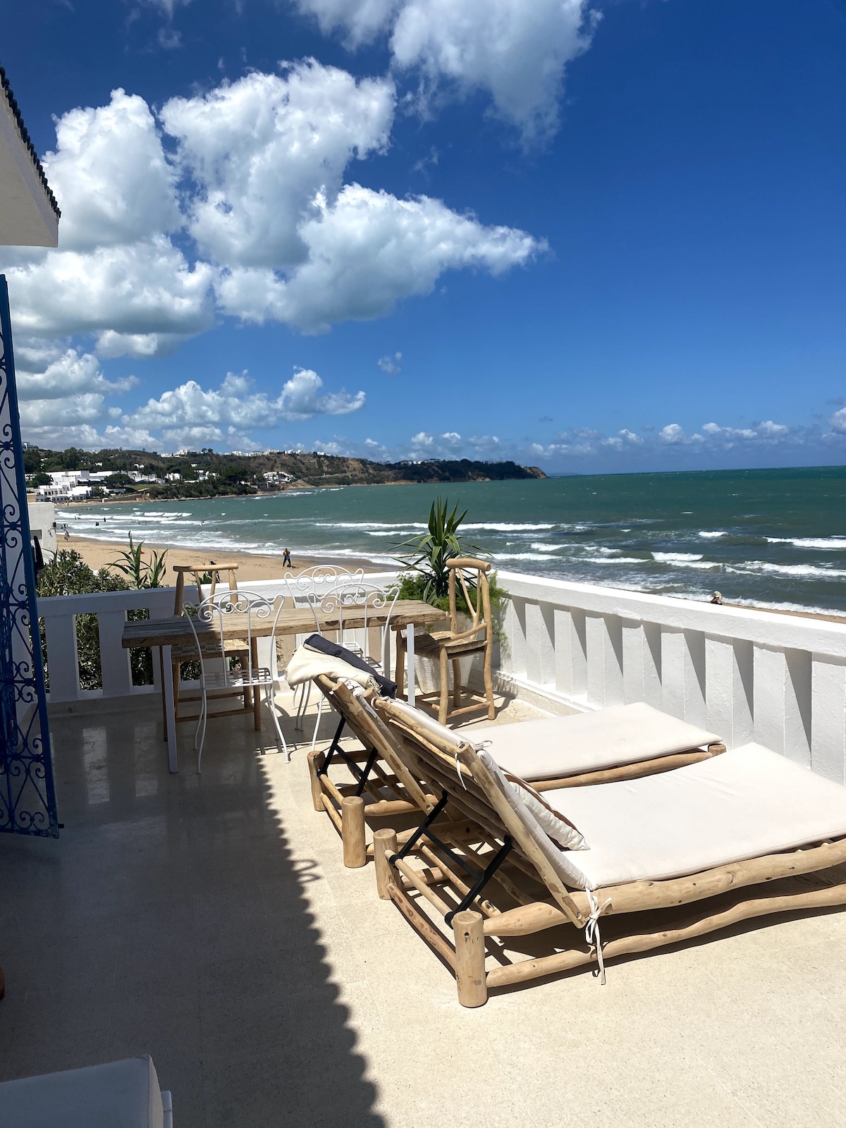Erleben Sie ein einzigartiges Erlebnis am Meer in La Marsa, indem Sie mit dem Rauschen der Wellen aufwachen und eine atemberaubende Aussicht von Ihrer Terrasse aus genießen. Zum Schwimmen haben Sie direkten Zugang zum Strand am unteren Ende der Treppe sowie Außenduschen. Unser Haus liegt 3 km von Sidi Bou Said und wenige Kilometer von der archäologischen Stätte von Karthago entfernt und bietet Ihnen ruhige und sonnige Tage in der Nähe aller Annehmlichkeiten.