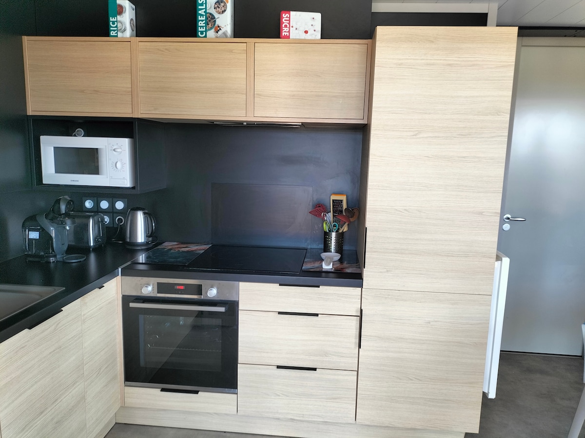 2 km vom Zentrum von Grau d 'Agde und 800 m vom Strand (Radweg) entfernt, kleine Villa (35m2) F2 unabhängig in einem Familienbesitz. Campingbereich Les Sablettes Unterkunft bestehend aus _Wohnzimmer mit Einbauküche, umwandelbar in 140 cm (ideal für Kinder), Tisch und Stühlen _ Zimmer mit Bett von 140 cm, Fernseher. _ Bad an das Zimmer mit italienischer Dusche _ Umzäunter Garten 80m2 mit Parkplatz und ausgestatteter Terrasse. -Klima und WLAN - Badetücher und Bettwäsche zur Verfügung gestellt