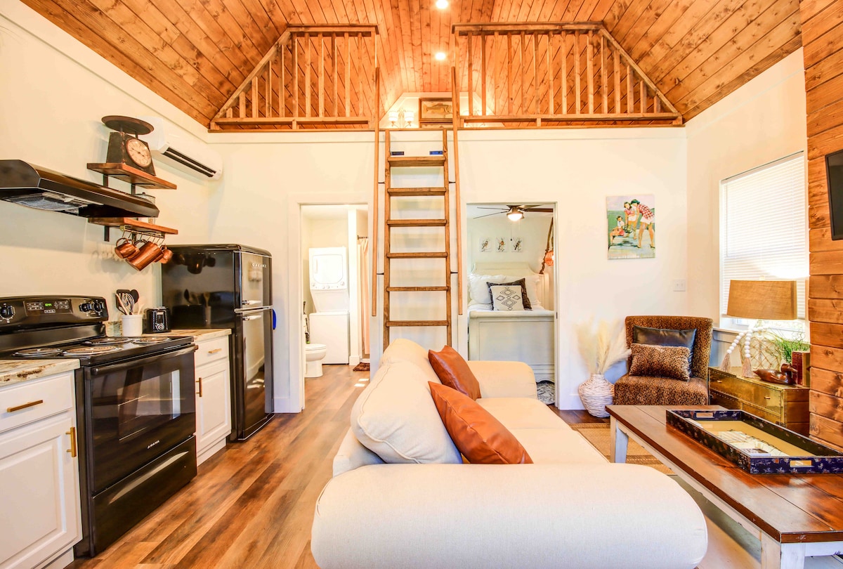 Bakers Loft hat unzählige professionelle Fischer am Lake Guntersville beherbergt. Das Haus ist 700 Quadratfuß groß und befindet sich 350 Fuß vom Hauptwohnsitz entfernt, sodass es sich um einen privaten, sicheren Ort handelt. Bakers Loft ist eine Ferienwohnung, die nur wenige Minuten vom Guntersville City Harbor entfernt liegt. Wohnzimmer und Schlafzimmer verfügen über Fernseher. Es gibt ein komplettes Bad und eine Küche und kostenfreies WLAN. Auch genügend Parkplätze mit Wasseranschluss und verfügbaren Verlängerungskabeln. Die hohe gewölbte Decke vermittelt ein geräumiges Gefühl zum Entspannen.
