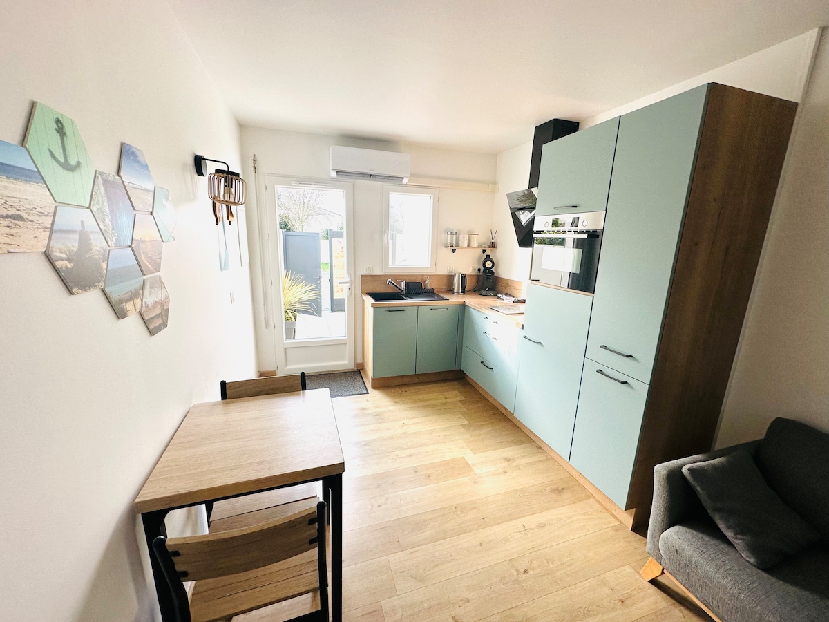 Sehr schöne Wohnung komplett renoviert wie ein Loft in einem Haus des Charakters. Großes Wohnzimmer, das dank seiner zahlreichen Öffnungen, die es ermöglichen, die Sonnenstrahlen zu nutzen, in Licht getaucht ist, darunter eine voll ausgestattete Küche, ein Essbereich, ein Wohnzimmer und ein Zwischengeschoss, in dem ein Bett 160 untergebracht ist. Ein großes Schlafzimmer mit Schränken und Duschbad. Ein paar Minuten zu Fuß von der Innenstadt und auf der direkten Achse zur Insel Re. Beruhige dich, du bist zu Hause!