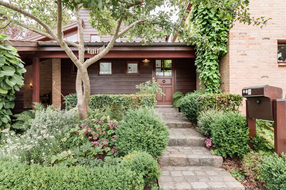 Step through the private entrance and into an interior filled with bright pictures, classic photos, and typical Scandinavian decor. The apartment is the lower floor of our architect designed villa, and we live upstairs. A small shady terrace complements the 100-square-meter apartment, which also has a wood-burning stove and huge soaking tub. The apartment has a fully equipped kitchen with dishwasher, a bathroom with a huge tub, a spacious dining room, a large living room with fireplace and a ¾ bed, and a bedroom with a ¾ bed. An extra bed or baby bed can be arranged. Access to washing machine. You will have access to your own private terrace, and free parking. You will have your own separate apartment with your own entrance and small terrace. You will have access to laundry room. The apartment is the lower floor in our big villa. We have lived in Aarhus for many years, love the city and will be happy to give you advice about the neighbourhood and the city. This apartment is in a quiet, family-friendly neighborhood only 2 kilometers from the city. Hike and bike in the forest only steps away and stroll to the beach in minutes. A short walk will reach Tivoli Friheden amusement park and Marselisborg Castle City busses is just around the corner, the light rail and train station is 3 km away. There is free parking just outside our door. But please be carefull not to park in front of an entrance) This apartment is a part of our villa in a quiet, family-friendly neighborhood only 2 kilometers from the city. Hike and bike in the forest only steps away and stroll to the beach in minutes. A short walk will reach Tivoli Friheden amusement park and Marselisborg Castle