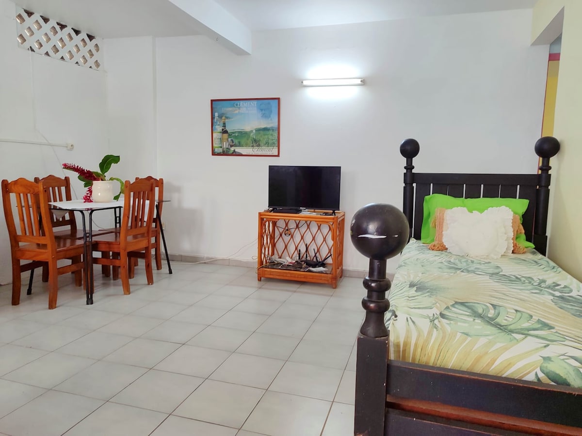 Entspannen Sie sich in dieser ruhigen und eleganten Unterkunft. 15 Minuten von Fort-de-France entfernt, ist Case-Pilote ideal gelegen, um den Norden der Insel zu besuchen. Sie werden es genießen, nach Belieben mit Meerblick aufzuwachen. Das Studio wurde renoviert und ist komplett ausgestattet (Klimaanlage, Warmwasser, Waschmaschine, Küchenutensilien...). Sie haben einen kleinen Gartenbereich für einen Aperitif und wenn Sie Ihre Mahlzeiten wünschen. Weniger als 600 Meter entfernt, wird Ihnen das Dorf seinen ganzen Charme verleihen.