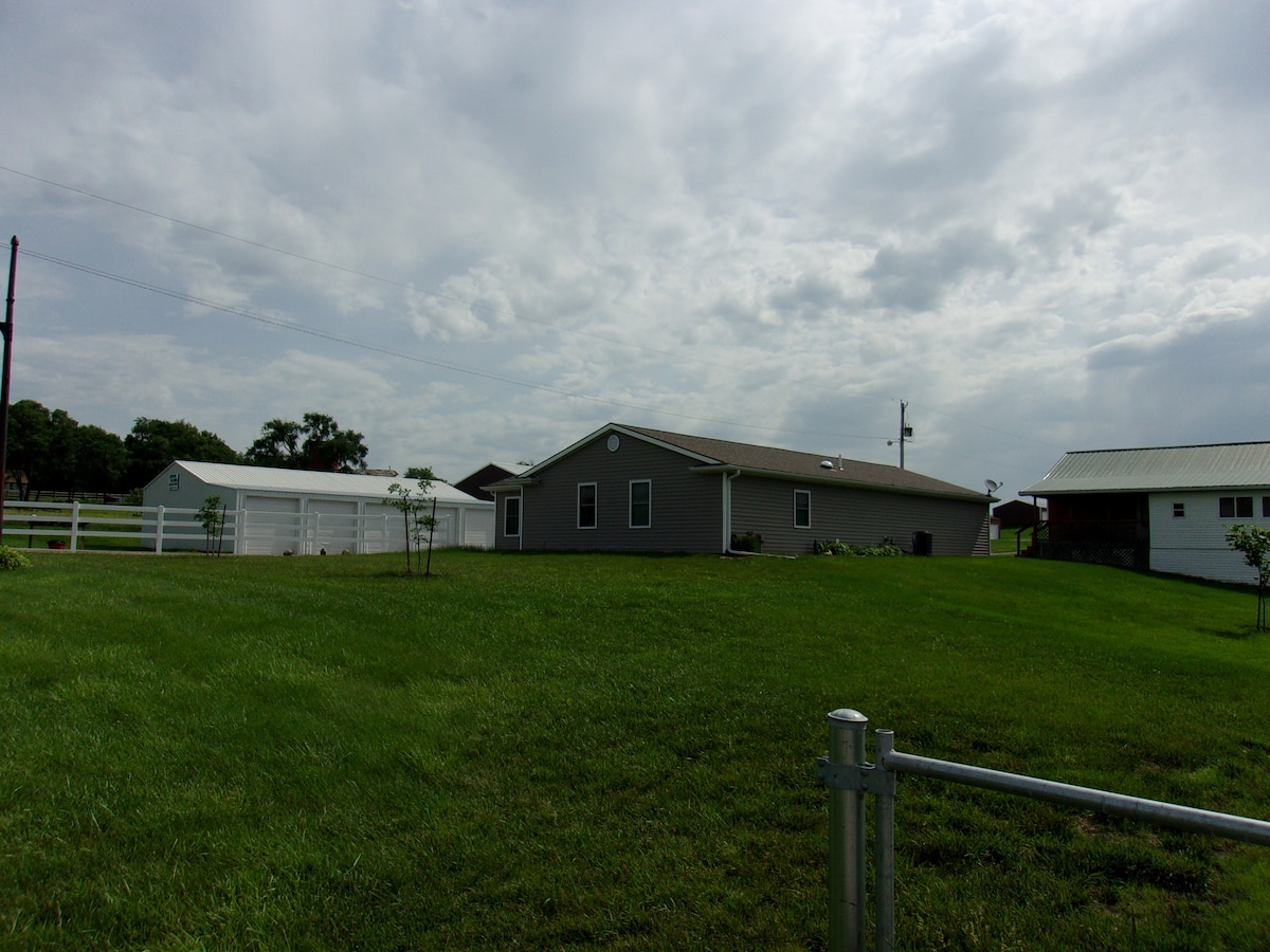 Entspanne dich in dieser ruhigen und stilvollen Unterkunft im Herzen von Northwest Missouri und nur wenige Gehminuten von der Universität entfernt. Eine langjährige Vision, schöne und individuelle Räume für diejenigen zu bauen, die Maryville besuchen. Egal, ob du die Bärenkatzen oder Spoofhunde jubst, in der Gegend für die Hochzeit eines Freundes, ein Familientreffen, ein Golfturnier, einen Umzug deines Kindes in das College im Nordwesten oder einen Alumni, du wirst dieses abgeschiedene Haus auf 5 Hektar genießen, umgeben von Hedgerow-Bäumen.