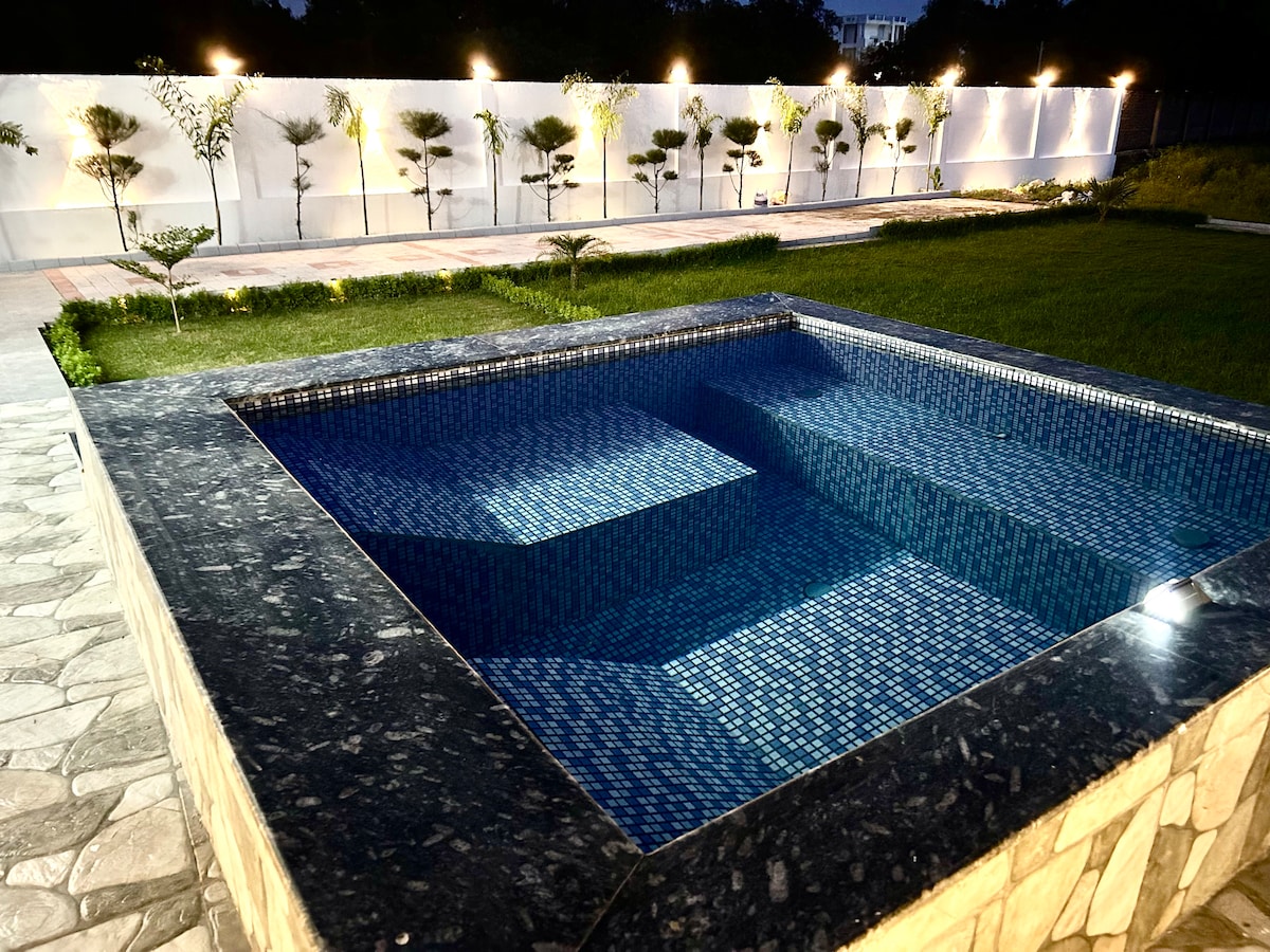 Located on the outskirts of the city, away from the hustle, this unique stay provides you with a luxurious experience in the middle of the nature. The villa comes with a Swimming Pool with Jacuzzi, which provides a perfect get-away with your friends and family..