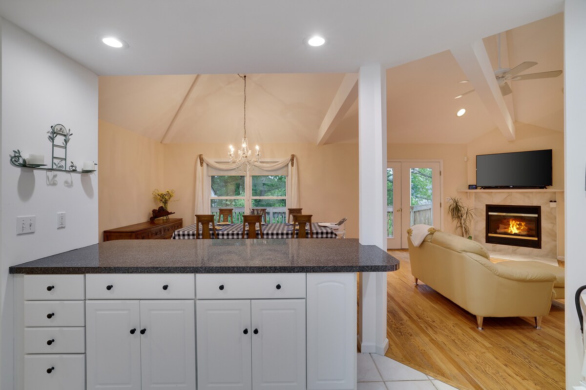 Entfliehe einem atemberaubenden Blick auf den bewaldeten Teich in unserem geräumigen Haus in einer lebhaften 4-Saison-Community. Perfekt für unvergessliche Familienzusammenkünfte und Outdoor-Abenteuer. Innerhalb von 5 Autominuten erreichst du einen Gemeinschaftssee mit Strand, zwei großen Pools, verschiedenen Sportplätzen sowie praktischen Restaurants und einer Bar. Für diejenigen, die zusätzlichen Genuss oder eine Runde Golf suchen, befinden sich ein luxuriöses Spa und ein Weingut alle im Umkreis einer kurzen 10-minütigen Fahrt. Schaffe bleibende Erinnerungen!