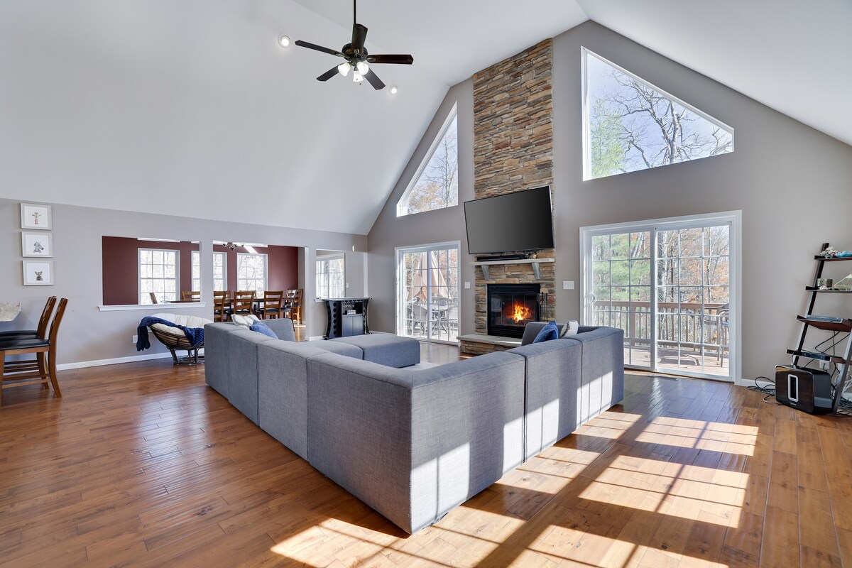Luxury 5BR custom-built retreat in Masthope’s four-season private community. Walking distance to two heated pools, lodge, playground, mini-golf and to the top of the mountain at Ski Big Bear. The Community amenities also include a private beach and clubhouse on beautiful Westcolang Lake. This mansion of Nearly 5,000 sq ft has two epic game rooms, movie theater, PS5, hot tub, chef’s kitchen, 3 fireplaces, and a spacious deck with grill. Sleeps 12 in total comfort and style. Not dog-friendly.