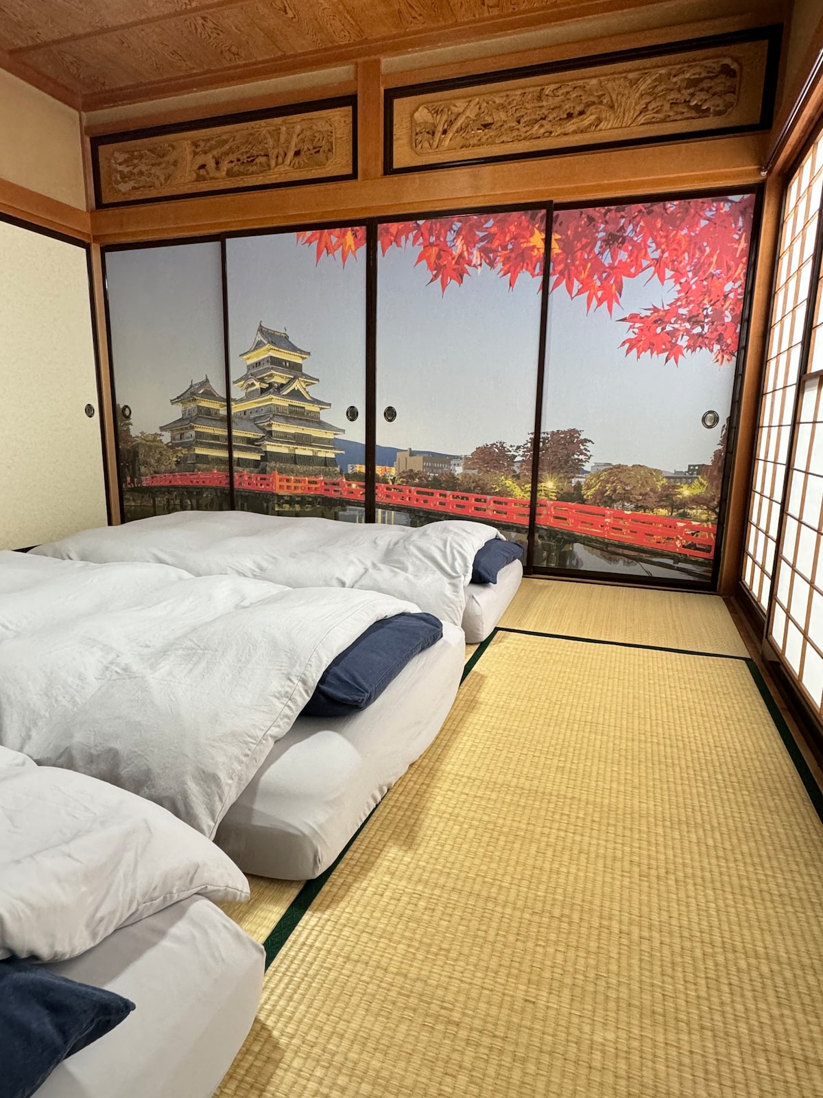 Popotel oneは、松本城の目の前にたたずむ、世界中から集めたアンティークで彩られた築100年の古民家です。 3ベッドルーム・最大12名で泊まれる大きな家は、丁寧に手入れされた居心地のよい空間です。 異国の魅力と日本の静寂が共存する一軒家で、ゆったり過ごしてください。 この家はのどかで日当たりがよく、リビング・中庭・ベッドルームなど、一日を通してどこにいても気持ちよく過ごせます。 そこかしこに置かれた世界中のアンティークは、時代と空間が交差する独特の空気を作り出しています。 お風呂やキッチンなどの設備は古いですが、ていねいにメンテナンスをし続けてきました。 昔ながらの日本の生活を感じてください。 子どもに大人気の大きな2段ベッドの部屋や、松本城が見える和室など、異なる3つのベッドルームがあります。お気に入りのベッドルームを見つけてください! 松本はコンパクトで歴史ある街です。松本城などの観光地だけでなく若者に人気のカフェやレストランもあり、街歩きを楽しむことができます。 家から徒歩3分の銭湯で日本のお風呂文化を体験するのもおすすめです! どうぞ気軽に問い合わせてください。
