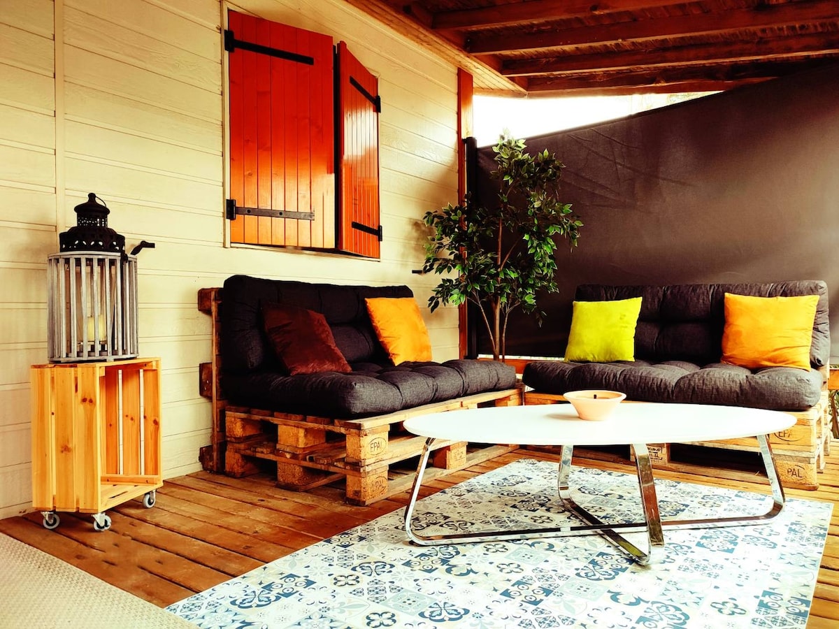 Der geheime Garten ist ein nicht klassifizierbarer Ort, der dich aber nicht gleichgültig lassen wird! Ist es ein Garten? Eine Hütte? Wohnwagen? Das ist alles auf einmal. Nur für Sie. Im Hof unseres Weinguts haben wir dieses kleine Paradies eingerichtet. Es besteht aus einem Wohn-Wohnwagen Küche/Wohnzimmer, einem Schlafzimmer/Büro-Wohnwagen und einer Badezimmerhütte (aber mit allem Komfort!). Ein Guinguette-Stil, lustig, gemütlich und definitiv atypisch.
