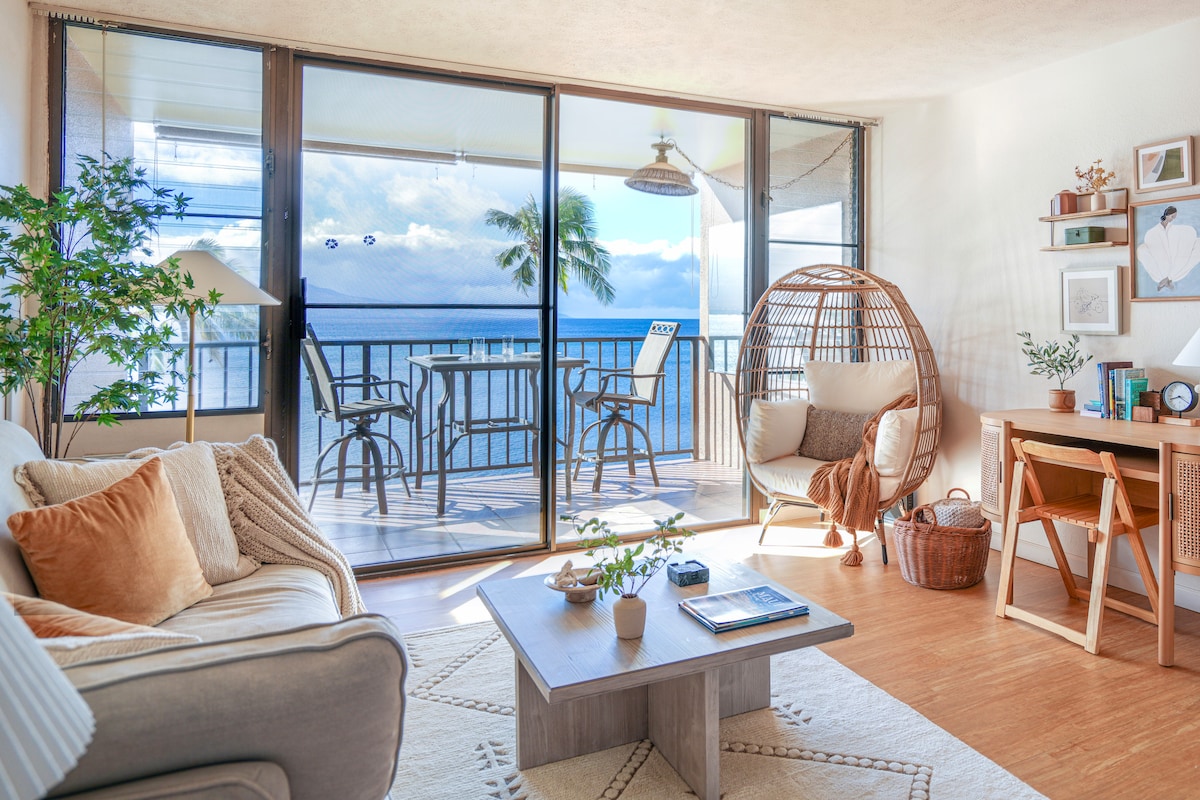 In lokalem Besitz und betrieben Studio-Eigentumswohnung mit der besten direkten Strandlage, Panoramablick auf das Meer, Sonnenuntergänge und saisonale Walbeobachtung. Der Eigentümer hat bei der Renovierung dieser Einheit keine Kosten gescheut, was sie zu einer der schönsten Einheiten in ganz Mahana macht. Wache mit der kühlen tropischen Brise und den Geräuschen der Küste auf, die nur 50 Fuß entfernt ist. Am North Kaanapali Beach gelegen. Genieße die atemberaubende Aussicht und die warme Sonne von Maui im Inneren, während die zentrale Klimaanlage dich zu jeder Tages- und Nachtzeit kühl und komfortabel hält.