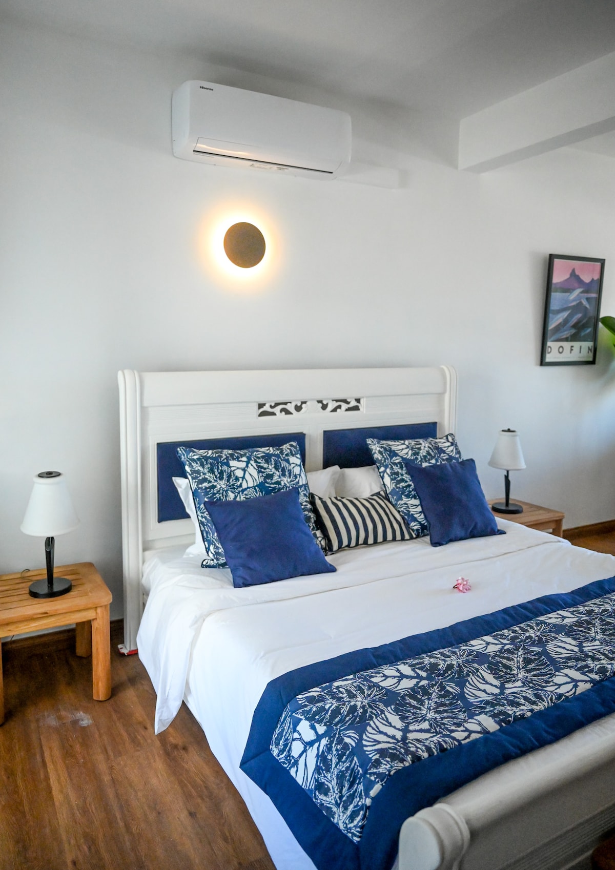 Eine Traumhafte Auszeit! 🌿🌊 Am Fuße des majestätischen Le Morne-Berges lädt diese geräumige und lichtdurchflutete Unterkunft zu einer unvergesslichen Auszeit ein. Mit 2 eleganten Schlafzimmern, 2 Bädern, einem gemütlichen Wohnzimmer und einer voll ausgestatteten Küche wurde an jedes Detail für Ihren Komfort gedacht. Genießen Sie von der Terrasse aus den panoramischen Blick auf die Lagune, Île aux Bénitiers und La Tourelle du Tamarin, und entspannen Sie sich in Ihrem privaten Pool. ✨🏝