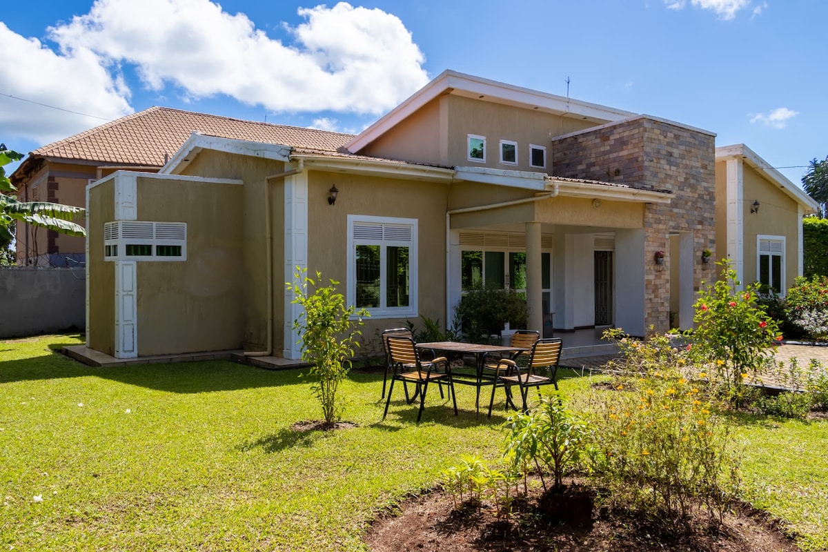 Das Haus ist in der Nähe von allem, was es einfach macht, deinen Besuch zu planen. Es ist eine 10-minütige Fahrt vom Flughafen Entebbe oder 3 Meilen entfernt. Finde den Kitooro-Markt, Supermärkte und lokale Restaurants, die nur 5 Gehminuten entfernt sind. Zwei Einkaufszentren bieten Aktivitäten, Restaurants CJ's, KFC usw. Das Haus verfügt über ein großes Gelände, eine heiße Dusche, eine Waschmaschine, unbegrenztes WLAN, einen Herd, eine Mikrowelle, einen Gefrierschrank und eine Backup-Stromversorgung. Einfache Selbst- und Personal-Check-in-Optionen sowie ein ferngesteuertes Haupttor und vollständig an der Wand. Genieße deinen Aufenthalt!