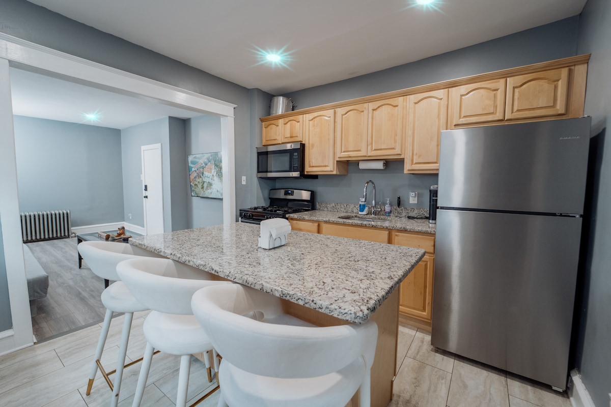 Willkommen in deinem Philly-Zufluchtsort! Diese modernisierte Wohnung mit 1 Schlafzimmer eignet sich am besten für 1–2 Gäste, die einen komfortablen und erholsamen Aufenthalt suchen. Es bietet zwar Platz für bis zu 4 Gäste, aber Gruppen mit mehr als 2 Gästen müssen im Voraus genehmigt werden und es fallen zusätzliche Gebühren an. In Mayfair, einem ruhigen Viertel im Nordosten Philadelphias, gelegen und perfekt für Paare und Reisende. Genieße eine gemütliche, saubere Unterkunft, die nur eine kurze Auto- oder Mitfahrgelegenheitsfahrt von der Innenstadt, Restaurants und Ausgehmöglichkeiten entfernt ist.