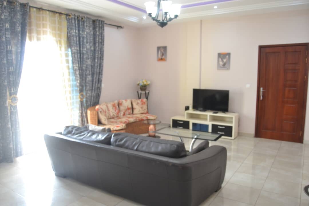 Genießen Sie mit der Familie diese fabelhafte Unterkunft, die 1 großes Wohnzimmer, 2 große Schlafzimmer, 2 Duschen mit warmem Wasser, 2 Balkone, eine große ausgestattete Küche bietet. Die gesamte Unterkunft verfügt über einen Luftkühler und einen Stromgenerator (im Falle eines Stromausfalls von Eneo). Sicherheit rund um die Uhr mit Sicherheitskamera in einer sehr ruhigen Gegend abseits vom Lärm des Stadtzentrums. 30 Minuten vom Flughafen NSI, 30 Minuten vom Stadtzentrum entfernt. Haushälterin steht Ihnen zur Verfügung.
