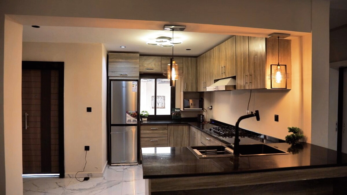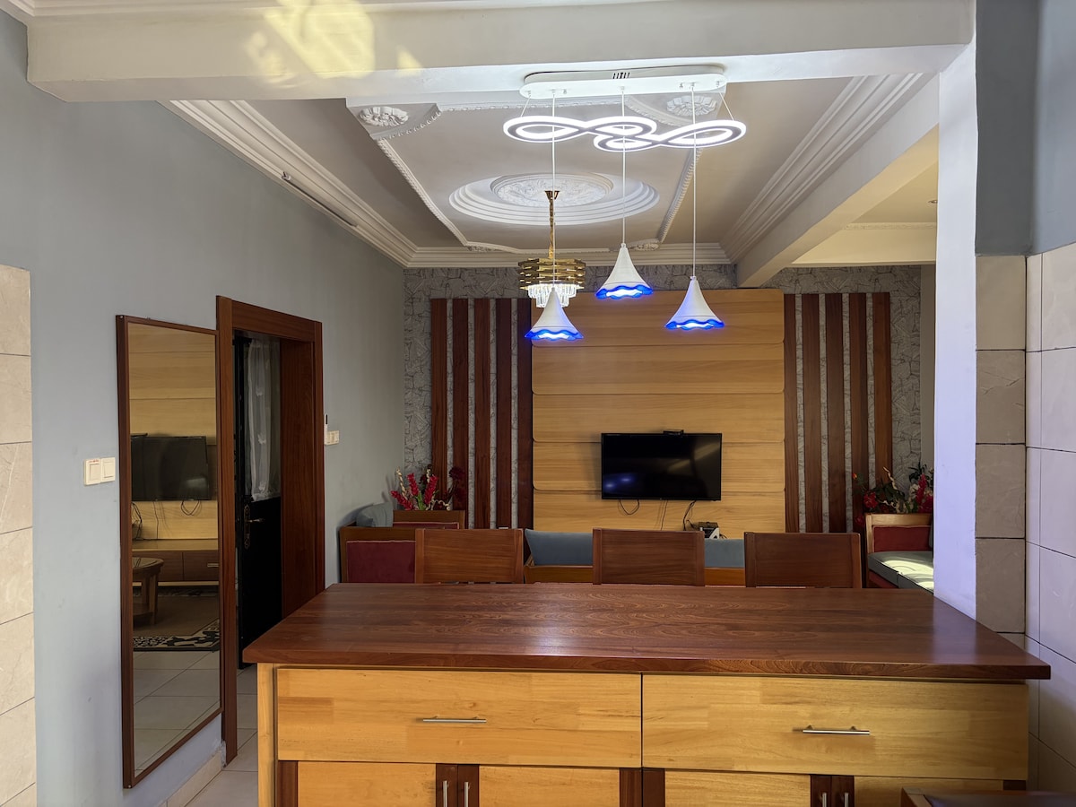 Willkommen in dieser modernen und einladenden möblierten Wohnung in Odza, einer ruhigen, sicheren und gut angebundenen Gegend. Vor Ort finden Sie: - Ein bequemes Bett mit sauberer Bettwäsche - Unbegrenztes WLAN für Ihre Bedürfnisse - Eine Einbauküche - Badezimmer - Sicherheitsdienst Die Wohnung wird vor jedem Aufenthalt sorgfältig gereinigt und Grundnahrungsmittel werden bereitgestellt Standort: • 15 Min. vom internationalen Flughafen • 20 Min. vom Stadtzentrum entfernt • Taxis leicht verfügbar