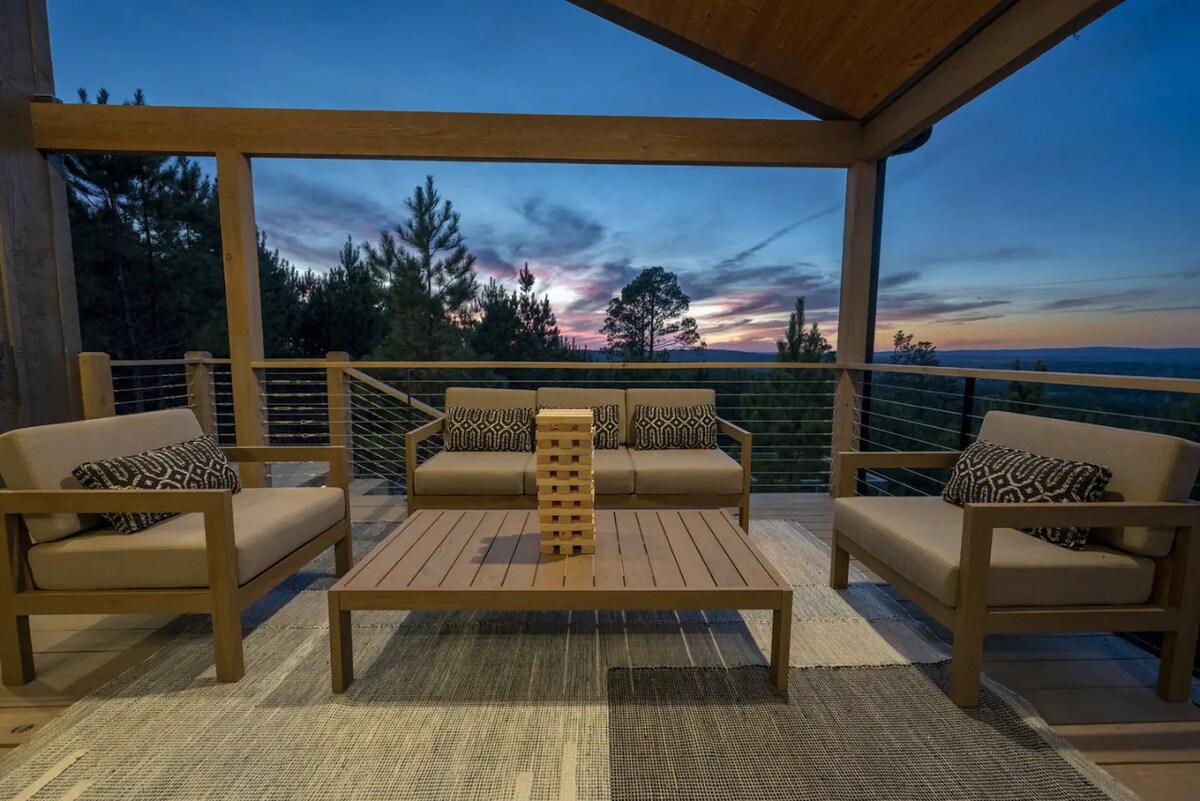 Willkommen in der Forestlight Lodge! Eine geräumige Hütte im Bauernhausstil in der begehrten Boulder Ridge Siedlung im neu entwickelten Hochatown North. Gewölbte Decken, offenes Wohnkonzept und hoch aufragende Fensterwände verbinden dich mit der Schönheit der Natur. Dieses Haus mit 3 Schlafzimmern und 2 Bädern hat alles, was du brauchst. Verbringe Sternenabende, um Geschichten rund um die Feuerstelle zu erzählen, oder genieße dein Buch, während du dich im Whirlpool entspannst. Erkunde endlose Möglichkeiten für Unterhaltung & Entspannung.